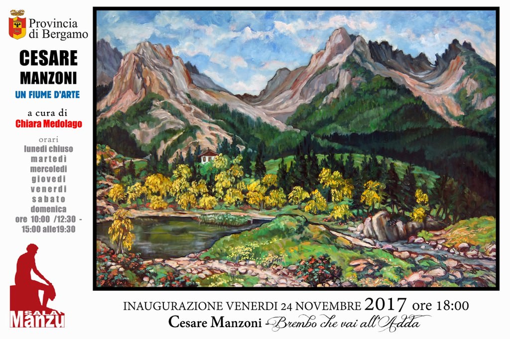 L’associazione “Un fiume d’arte” di Ponte San Pietro presenta nella Sala Manzù del palazzo della Provincia di Bergamo la mostra dell’artista Cesare Manzoni. Circa una settantina di opere dipinte ad olio sono dedicate al fiume Brembo che conferisce il nome alla valle Brembana e scorre dal Pizzo Diavolo di Tenda, nei pressi di Carona, fino al paese di san Pellegrino Terme.
