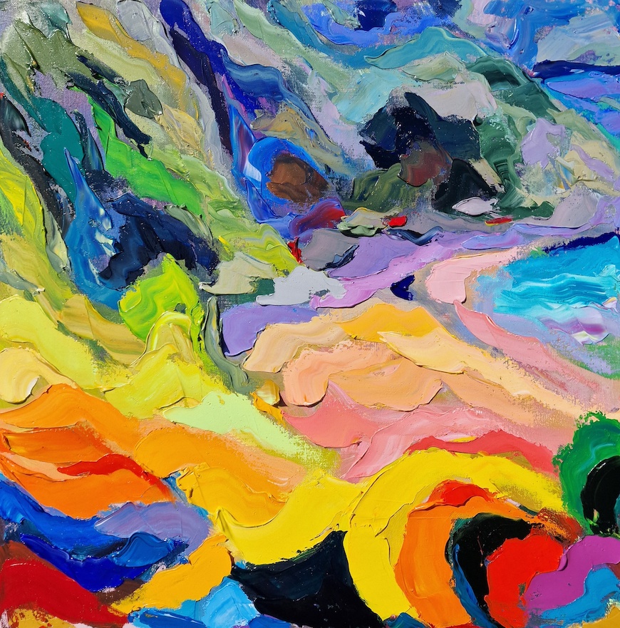 D’Alessio, invece, lo fa con la pittura, il colore cercando di liberare dalle forme impresse ad olio e acrilico sulle tele, l’elemento primordiale, facendo fuoriuscire e rievocando in un percorso a ritroso la situazione primigenia,