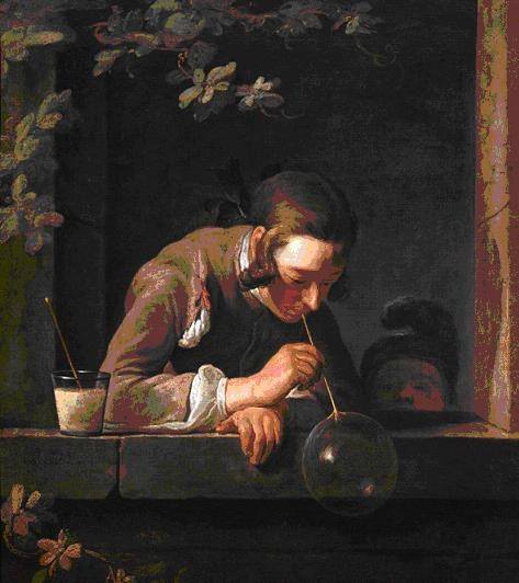 Nonostante ciò, nel 1728 l'Académie Royale de Peinture et de Sculpture - alla quale Chardin aveva sottoposto la propria candidatura con le prime impressionanti nature morte - riconosce il suo talento e lo accoglie nei suoi ranghi come pittore di frutta e di animali. La scelta del genere della natura morta, apparentemente minore, non ne vincola il successo e Chardin si impone presto sulla competitiva scena parigina. Nel corso del decennio successivo, egli estende la propria ricerca anche alla figura umana, effigiata perlopiù in ambienti domestici e nello svolgimento di semplici mansioni quotidiane, in scene in cui i ceti più umili sono associati ai rampolli della borghesia francese. Nascono così capolavori come Il garzone d'osteria, La governante o Il giovane disegnatore ai quali si affiancano le toccanti raffigurazioni delle attività ricreative dei giovani come le Bolle di sapone, la Bambina che gioca col volano o il Bambino con la trottola.