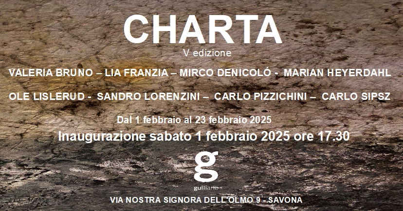 Sabato 1 febbraio 2025, dalle ore 17.30, fino al 23 febbraio 2025, ritorna in Galleria GULLIarte, a Savona in Via Nostra Signora dell'Olmo 9, la colltettiva a tema sulla carta, giunta alla quinta edizione dal titolo: