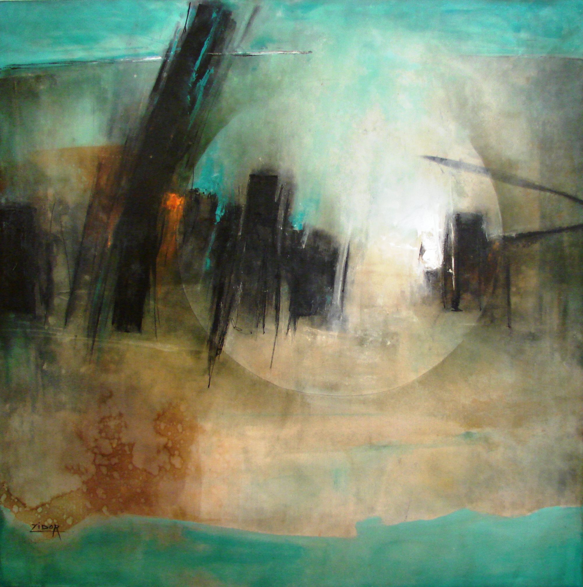 Nell’esposizione Zidor presenta paesaggi astratti costruiti seguendo le proprie emozioni.