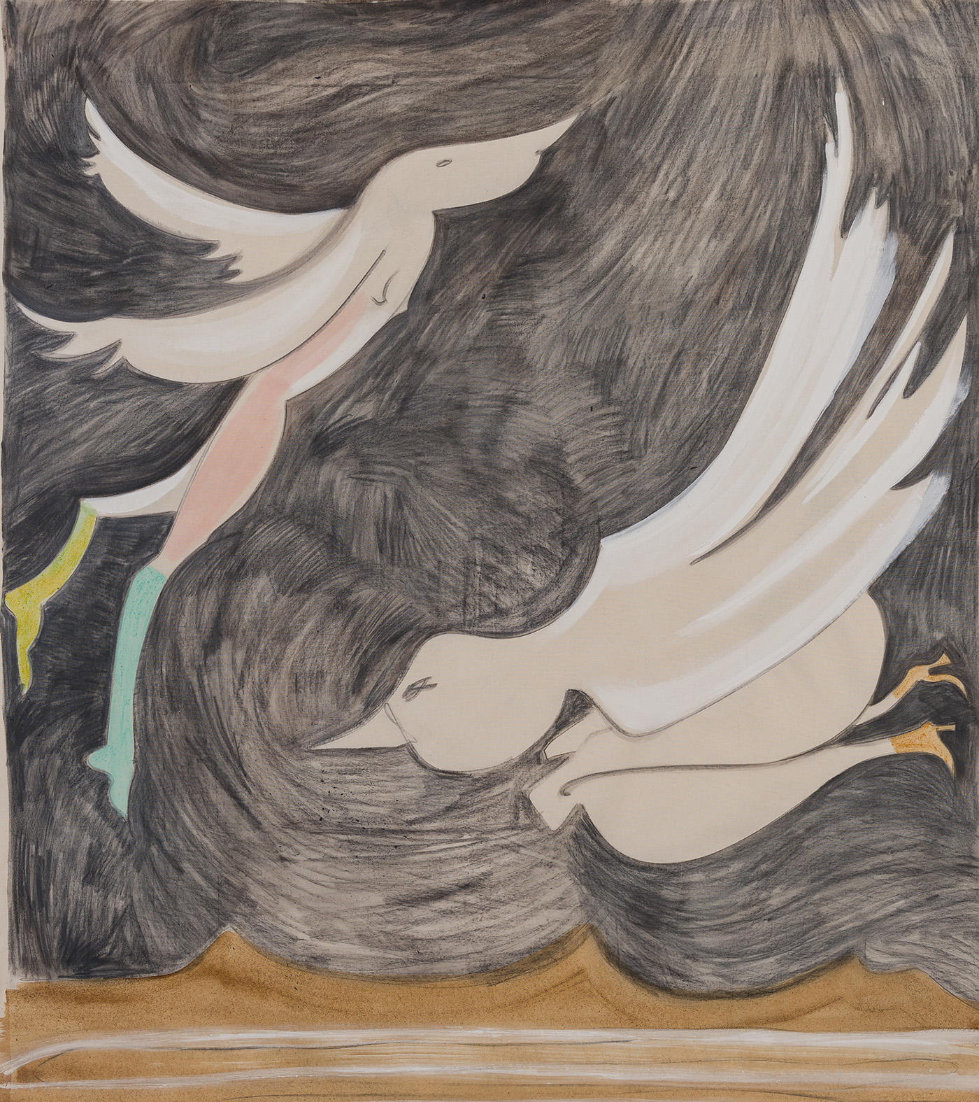 La mostra presenta una raccolta di opere, a carboncino e pigmento su tela grezza di varie dimensioni, nate dalla residenza di Culprit al Lanificio, un ex comparto industriale di Napoli. Questa nuova collezione di lavori, intitolata dall’artista “Aeromancy Suite”, racchiude la sua esplorazione nel DNA mitologico intrecciato al cristianesimo e i culti pagani precristiani, tracciando l’assorbimento del culto delle dee attraverso l’evoluzione dell’iconografia cristiana. (VVB)