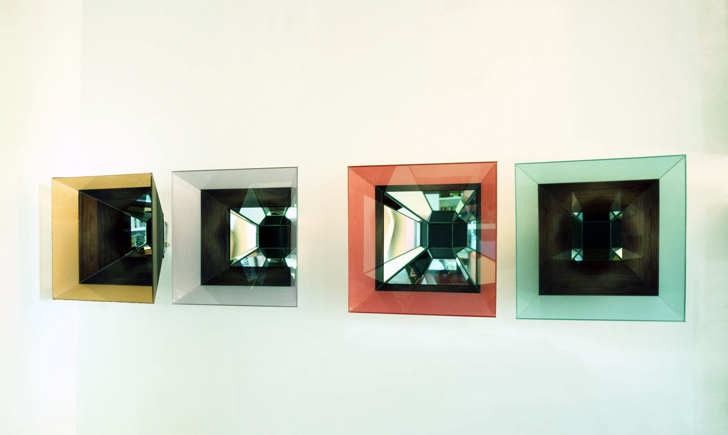 Nelle opere di Chiara Dynys si può guardare, riguardare e finanche “traguardare” (oltre e altrove). Caratteristico è l’impiego di superfici trasparenti oppure specchianti che sono in grado di sollecitare o destabilizzare lo sguardo dello spettatore. In mostra sono presenti tre distinte serie di opere che agiscono sulla percezione e sono tra loro connesse dal leitmotiv dello specchio. Look At You è una lunga sequenze di teche, grandi o piccole, in cui si assiste a un occultamento e a uno svelamento cromatico. Sono esposte per la prima volta le due versioni del San Sebastiano che interpretano i quadri di Antonello da Messina [Gemäldegalerie, Dresda] e di Domenico Ghirlandaio [Museo Nazionale di San Matteo, Pisa]; nella versione dell’artista, le frecce si conficcano nell’acciaio specchiante, seguendo lo schema della flagellazione dipinta nei due capolavori, permettendo al fruitore di riflettersi sulla superficie, prendendo così il posto del martire. Inedito è anche il ciclo Doppia stella e l’installazione Grande stella che si compongono di coni prospettici al cui interno è possibile ammirare l’illusione di un solido platonico. L’effetto caleidoscopico di queste “stelle” crea una vertigine che risucchia lo sguardo in una dimensione straniante, dove infinito e indefinito si incontrano.