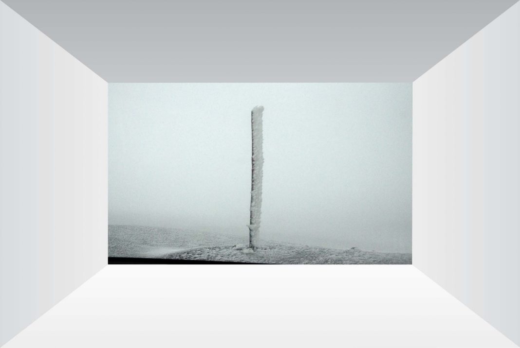 La serie di immagini, che si rivelano per quello che sono -monocromi/paesaggi – solo a un occhio paziente e “ripulito”, si inscrive in cornici “barocche”, molto evidenti e “ingombranti”, realizzate in gesso dello stesso colore di base dell’immagine incorniciata, bianco, azzurro, rosso e oro.