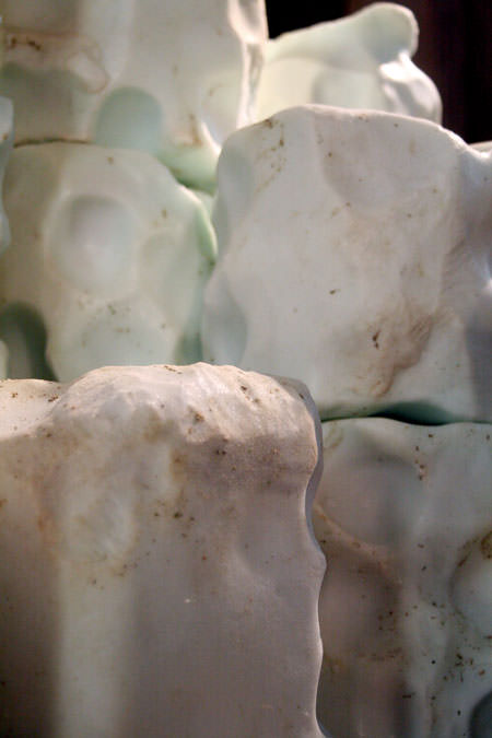 La sensibilità nel trattare i materiali del suo fare arte fa emergere la parte irrazionale di tutti noi dove le dicotomie tra naturale e artificiale, organico e inorganico, convivono in un unico teatro di natura.