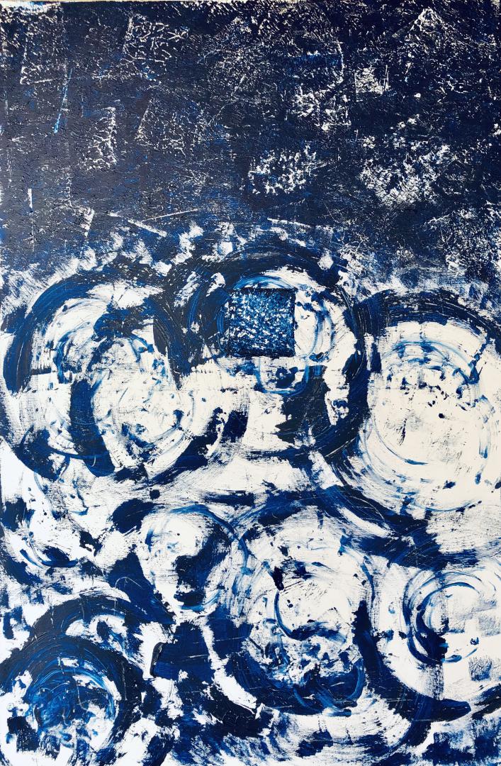 "In questa personale - spiega Chiara Montenero - per la prima volta utilizzo il cerchio in quanto l’Oceano è, a parer mio, l’Eterno e il Sublime. Baricco è uno dei miei autori preferiti perché, pur essendo un romanziere, la sua prosa visionaria è pura poesia. Ad ogni modo Cerchio e Quadrato esprimono un totale, ma il quadrato serve anche ad esprimere un’idea di limite. Il Cerchio e il Quadrato rappresentano i due aspetti fondamentali di Dio: l’unità è la manifestazione divina. Il Cerchio esprime il celeste, il Quadrato il terrestre, non in quanto opposto al celeste ma in quanto creato".