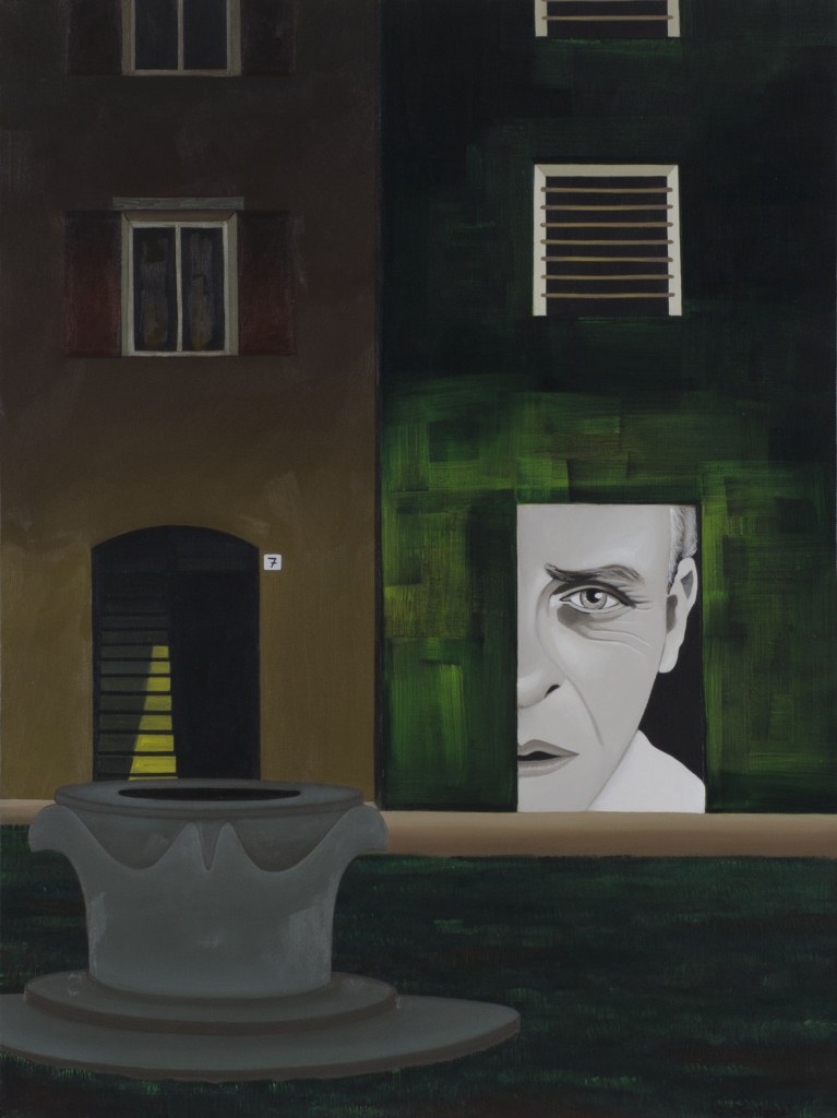 La giovane artista espone un ciclo di opere incentrate sul tema del paesaggio urbano dove spesso compare l’elemento umano, magari non visto, intravisto o di cui semplicemente se ne percepisce la presenza. Sono scenari dell’inconscio, l’atmosfera rarefatta e sospesa trascende la realtà, va oltre, verso un mondo onirico carico di potenza visionaria e fantastica dove albergano i ricordi, le paure recondite, le più profonde emozioni. Linee pulite e decise, campiture di colori piatti e uniformi, talvolta cupi, scorci dal taglio fotografico concorrono a creare gli scenari surreali dei mondi di Chiara Smirne.