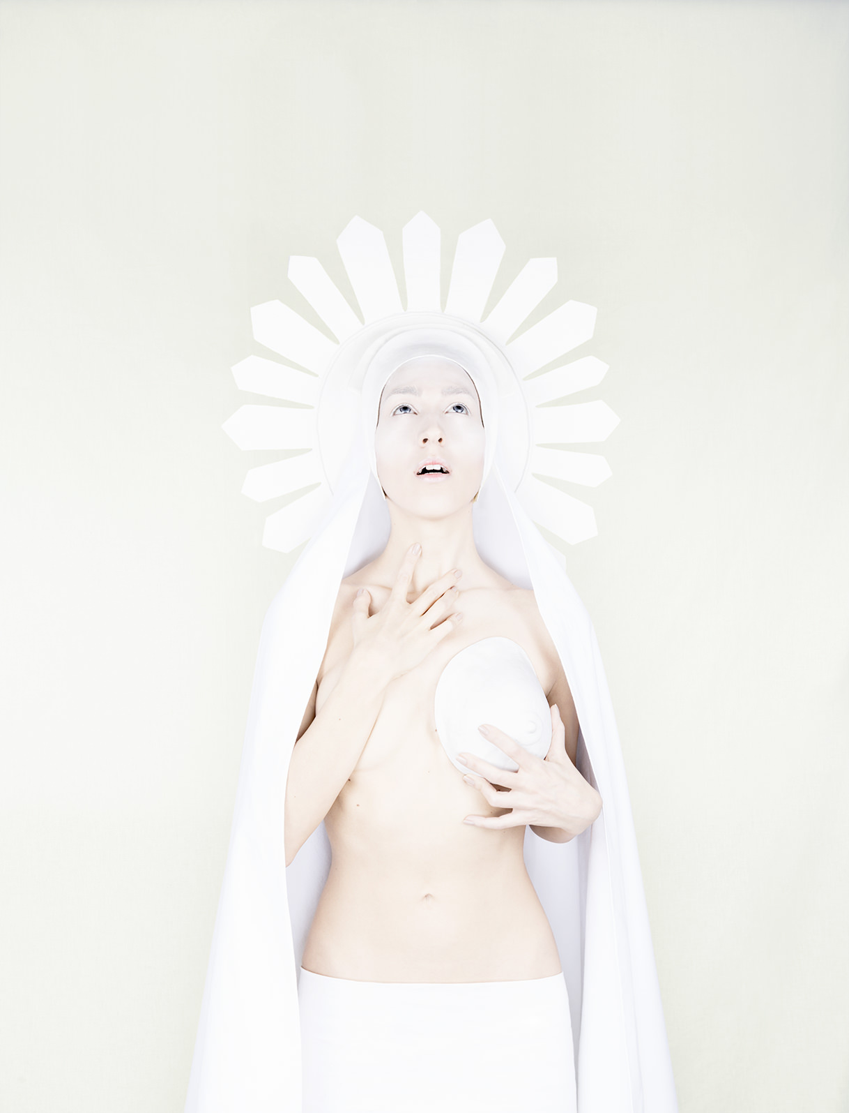 Nel viaggio iniziatico di Chiara Tubia, percorso di liberazione della natura terrena verso stadi di elevazioni spirituali, è narrato il viaggio iniziatico di ciascuna forma vivente. Una cosmogonia ancestrale in cui l’immagine dell’artista, offerta come icona sacra di una religione polisemica che riassume ciascun credo e ciascuna confessione, riflette con la limpidezza verosimile dello specchio, l’immagine di ogni essere creato; riflessi nelle immagini di questa sacerdotessa di liturgie antiche e universali (donna divinizzata o divinità antropomorfa, contemporaneamente materica ed eterea) il ritmo lento di un percorso catartico scandito da continue e ripetute prese di coscienza, conduce l’osservatore a livelli sempre maggiori è più alti di consapevolezza della propria essenza, del proprio ruolo, del proprio valore.