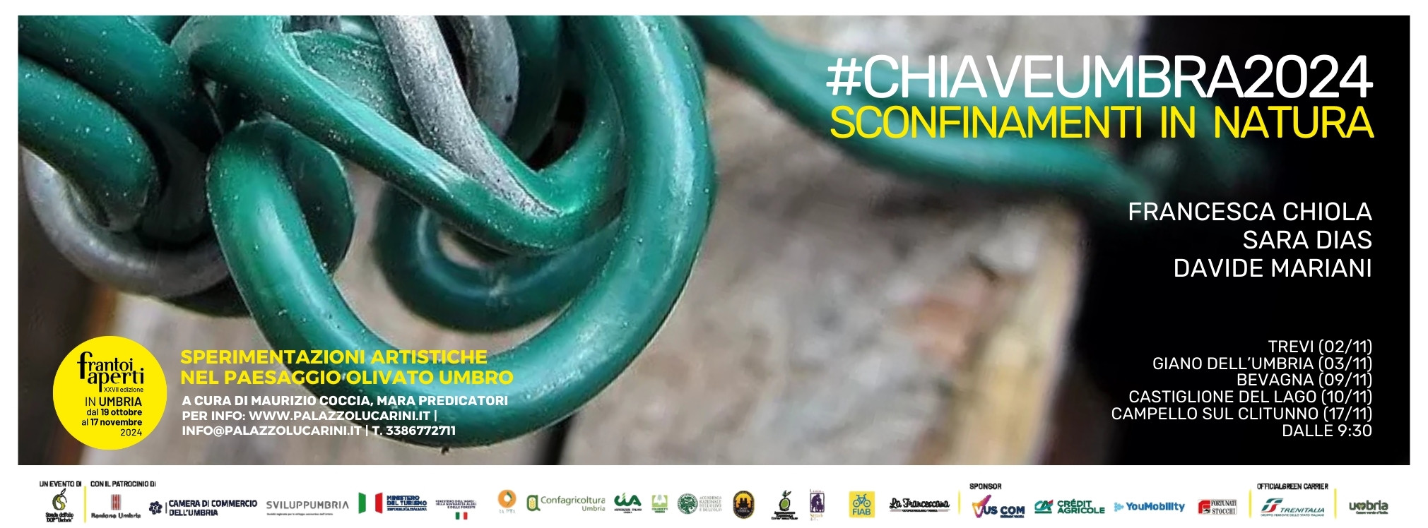 In occasione di Frantoi Aperti, i tre artisti selezionati per #CHIAVEUMBRA2024 | SCONFINAMENTI IN NATURA – Francesca Chiola, Sara Dias e Davide Mariani – si confronteranno con il paesaggio olivato umbro e le peculiarità dei comuni ospitanti. Il loro lavoro affronta alcune tematiche delle più recenti tendenze artistiche, oscillando tra contestazione e riappropriazione poetica dell’esistenza emotiva e intellettuale di persone, beni, ambienti, valori, proprietà e tradizioni.