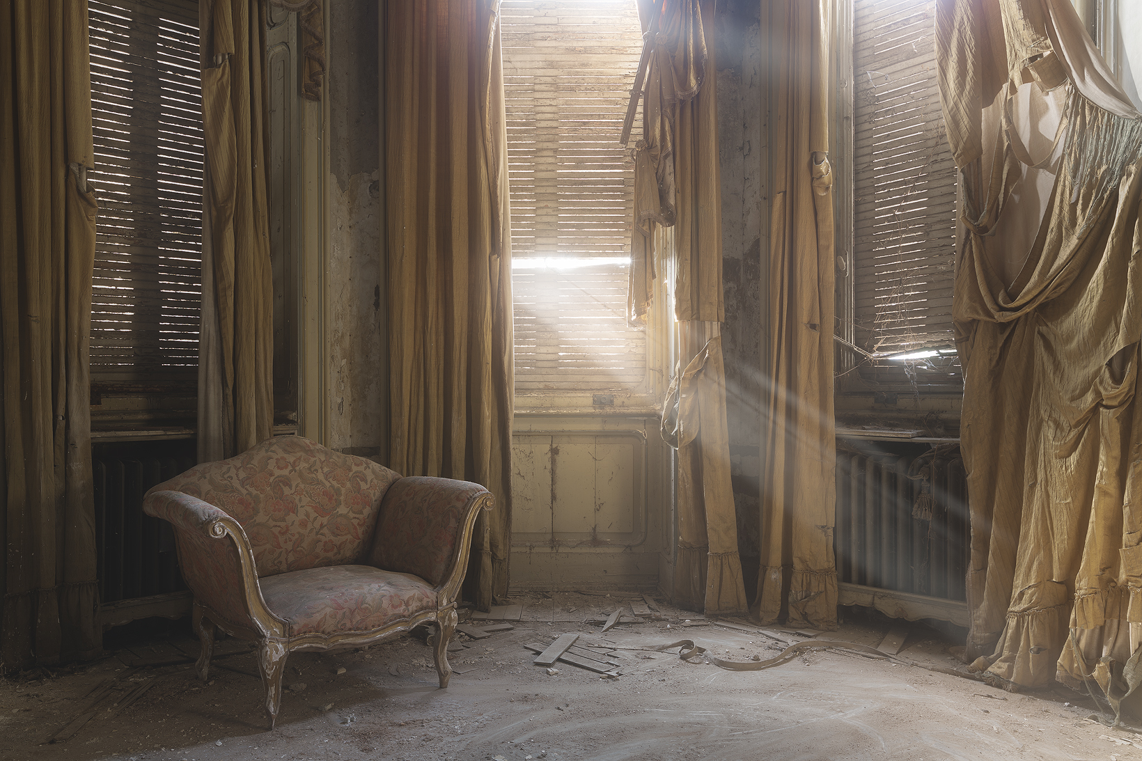 Palazzi in decadenza dell’antica nobiltà italiana e altri ambienti del passato settecentesco ed ottocentesco italiano, saranno i protagonisti della mostra. A completamento dell’esperienza visiva, verranno proiettati, con musica classica immersiva, diversi scatti raccolti dal 2016 ad oggi.
