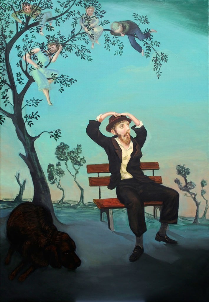 In tedesco c’è un detto, “facile come un gioco da bambini”. Allo stesso modo le scene di Macketanz sono senza ambizioni come i giochi dei bambini, a cui a volte fa diretto riferimento, sebbene con un elemento di rigorosa serietà. Qui ci ritroviamo nel mondo della nostra infanzia, in una realtà in qualche modo al di fuori delle nostre definizioni di significato. Perché E’ il significato. Non Ha un significato. E’ un mondo che esiste da prima della mela colta dall’albero della conoscenza. Allo stesso modo è il mondo messo a nudo. Questo mondo ci mostra che, se guardiamo da vicino, la Caduta non avverrà mai. Quando però lo facciamo, notiamo come la tecnica pittorica sottilmente sensibile di Macketanz estragga la luce dalle profondità e permette che i colori brillino come se fosse arrivato il momento dell’illuminazione. Ed è questo “come se” che ci protegge dall’insopportabilità di un tale stato, migliora l’assoluto, rendendolo inoffensivo. Dopo tutto, è solo un quadro. Ma è anche il mondo.