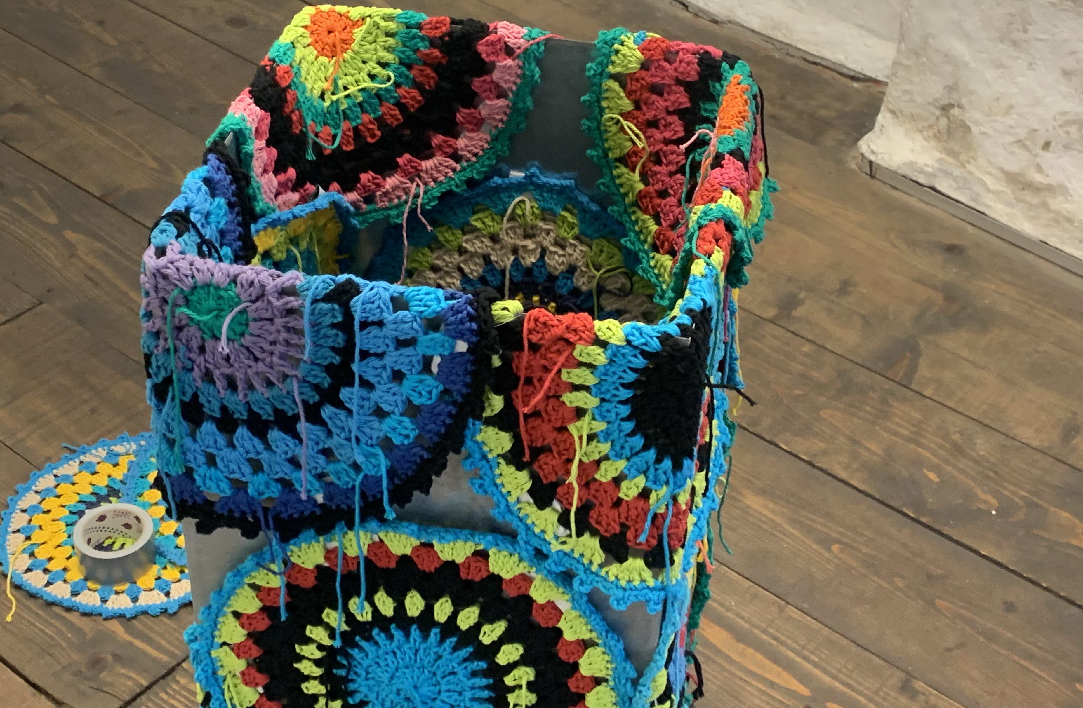 Questo progetto ha avuto inizio durante i giorni di chiusura della pandemia, Christine ha voluto seguire con il suo filo la mutazione del virus, elaborando tal volta 4 opere al giorno che mutavano in colore e trama. Un atto meditativo che oggi offre una riflessione oltre quella iniziale, quel filo che collega ogni cosa e che lei rende visibile dentro lo spazio ricreando diverse interpretazioni e mutazioni, ci mostra tutte le sue fragilità, i suoi poteri e anche i suoi pericoli.