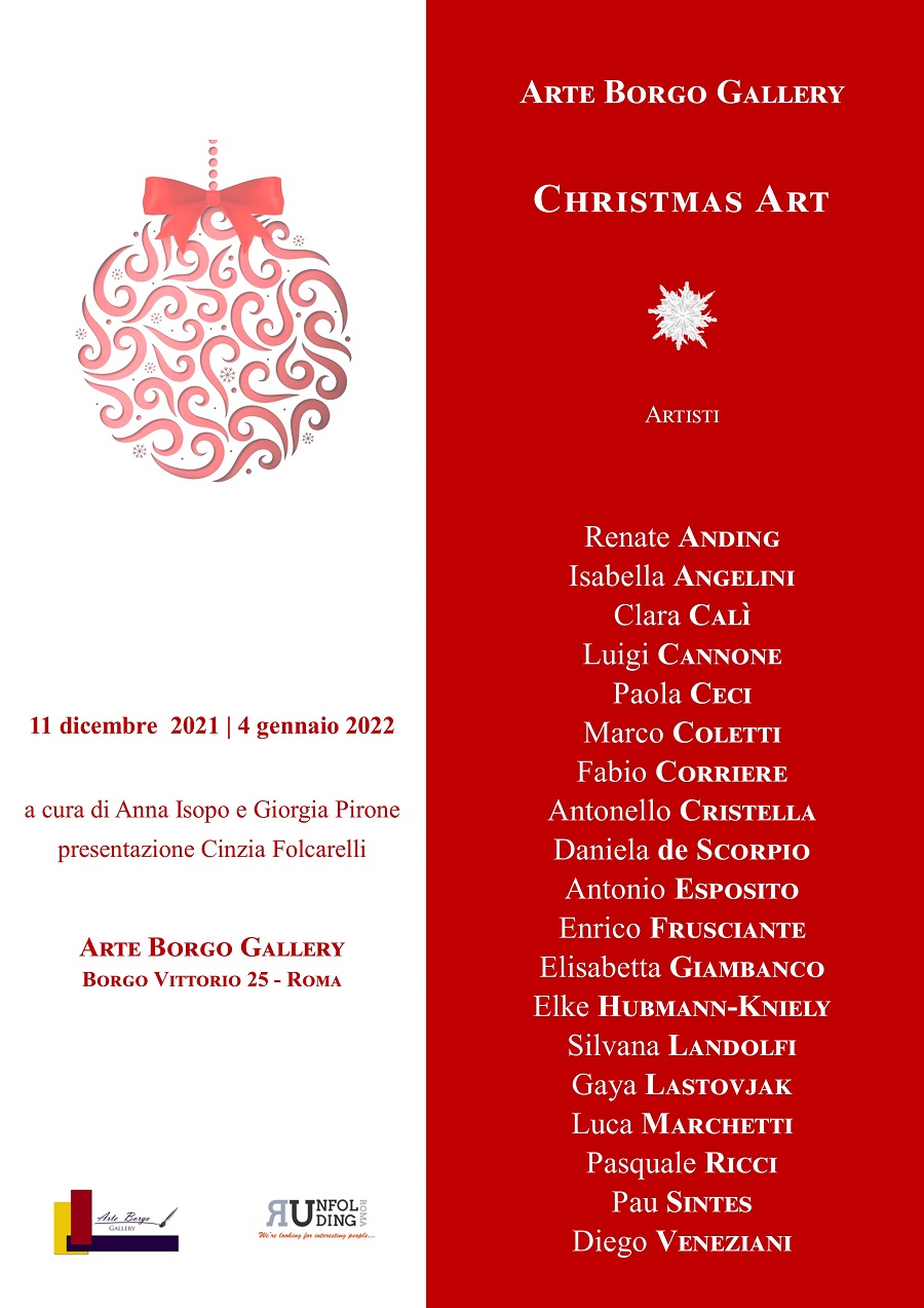 Arte Borgo Gallery presenta da sabato 11 dicembre alle ore 18.00, la V edizione della mostra collettiva Christmas Art curata da Anna Isopo e Giorgia Pirone, con la presentazione critica di Cinzia Folcarelli.