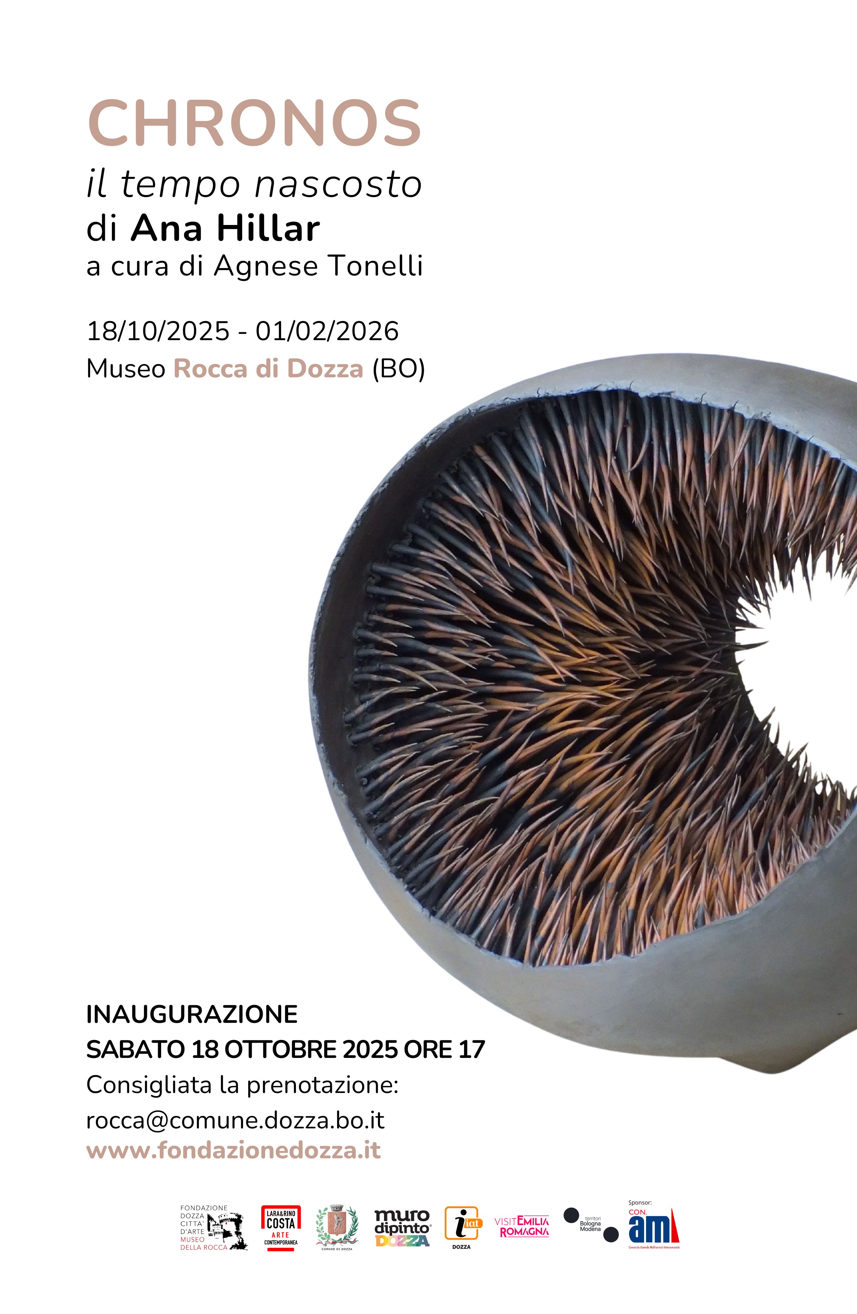La Fondazione Dozza Città d’Arte è lieta di presentare CHRONOS. IL TEMPO NASCOSTO, mostra personale dell’artista italo-argentina Ana Cecilia Hillar a cura di Agnese Tonelli e in collaborazione con Galleria Lara & Rino Costa Arte Contemporanea, che verrà inaugurata sabato 18 ottobre 2025 alle ore 17:00 al Museo Rocca di Dozza e resterà visitabile fino al 1° febbraio 2026.
