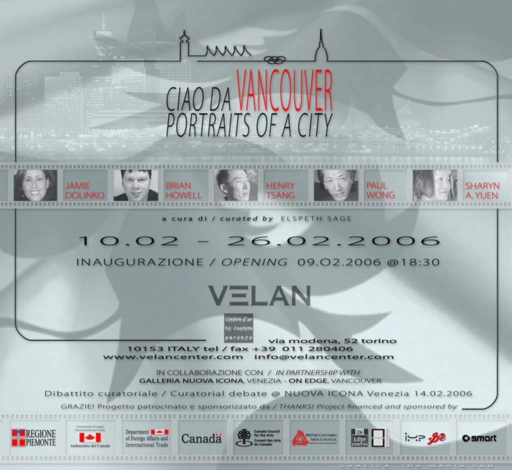 Questa mostra è una co-produzione tra Velan centro d’arte contemporanea, Torino, On Edge, Vancouver e la Galleria d’arte Nuova Icona, Venezia.