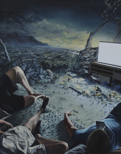 cinematografico di scenari futuri sia nella loro valenza negativa che positiva, in un percorso di pittura,