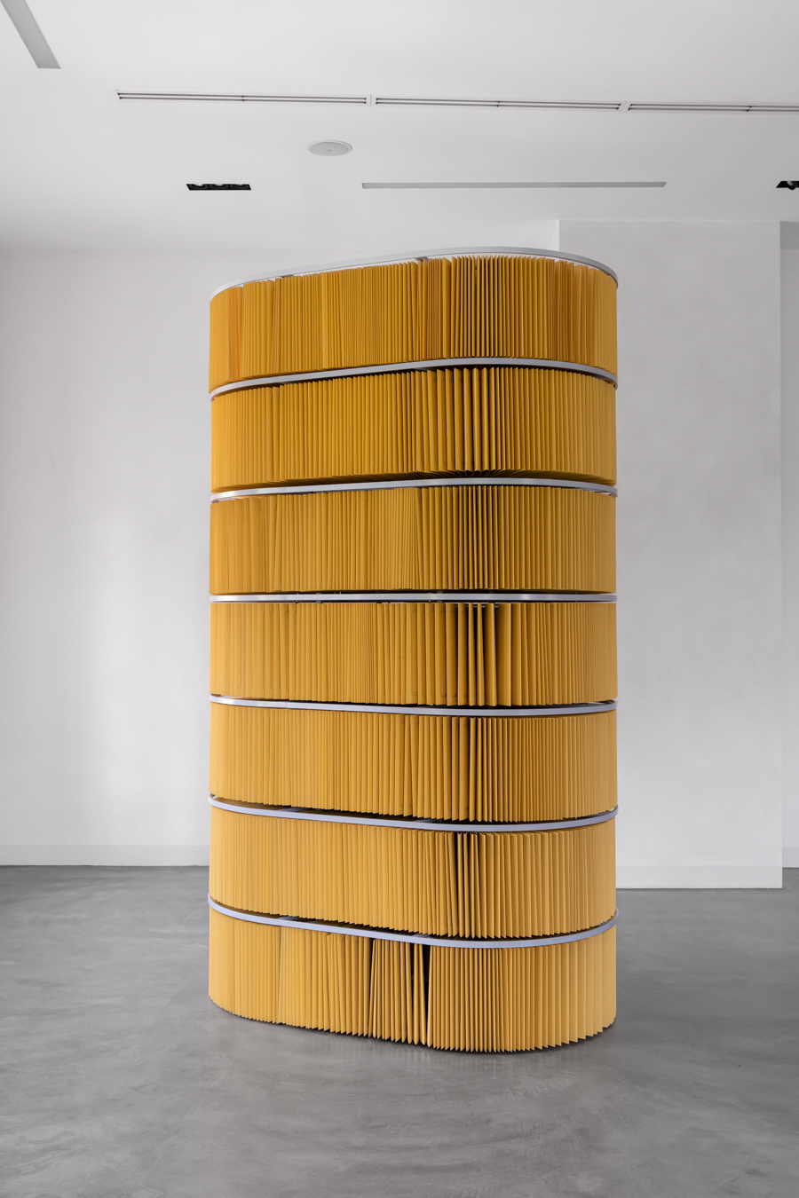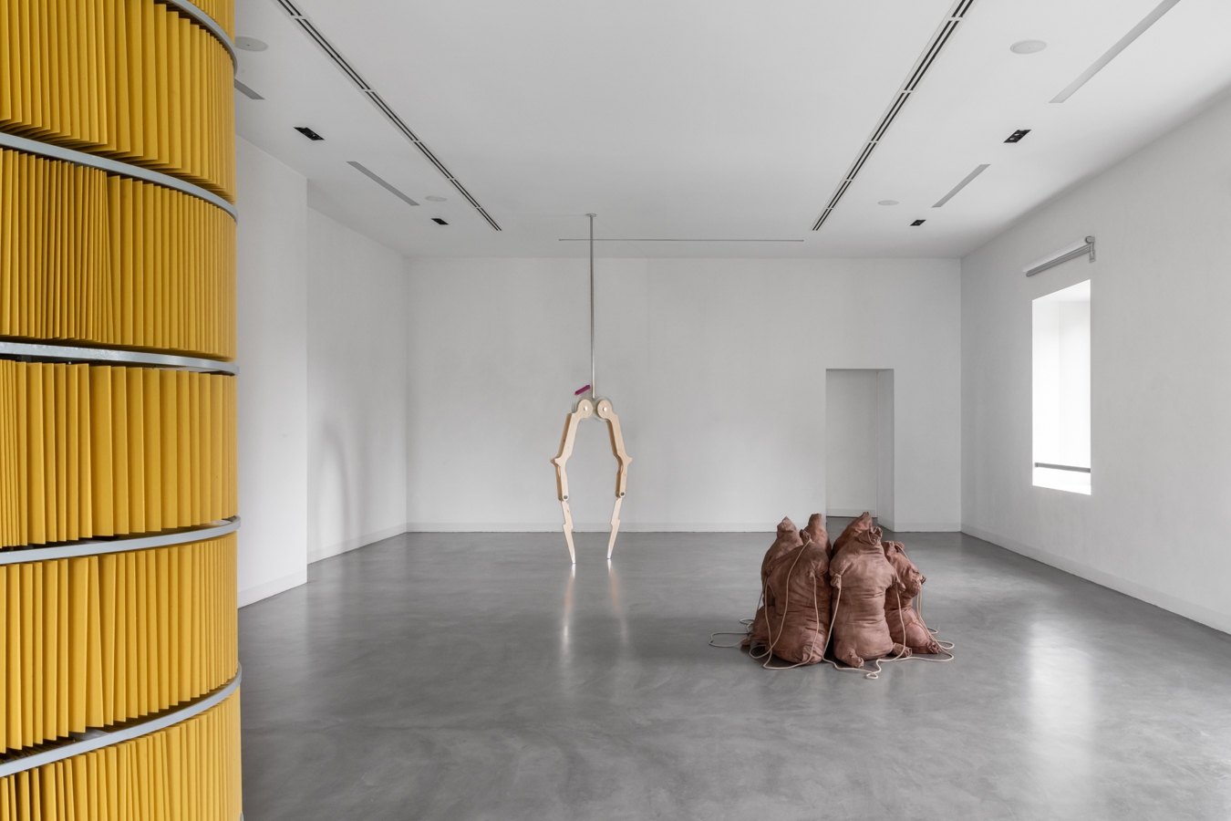 Non è certo una novità, quanto un processo oramai compiuto, quello dell’erosione dei limiti del medium: ciò da cui occorre partire è sempre l’opera come dispositivo, e nel caso della scultura la sua natura peculiare di oggetto nello spazio in grado di tracciare relazioni con lo spazio, e allo stesso tempo di porsi come sostanziale singolarità. I lavori presentati in mostra, al netto di evidenti differenze, rispecchiano questo carattere generale.