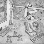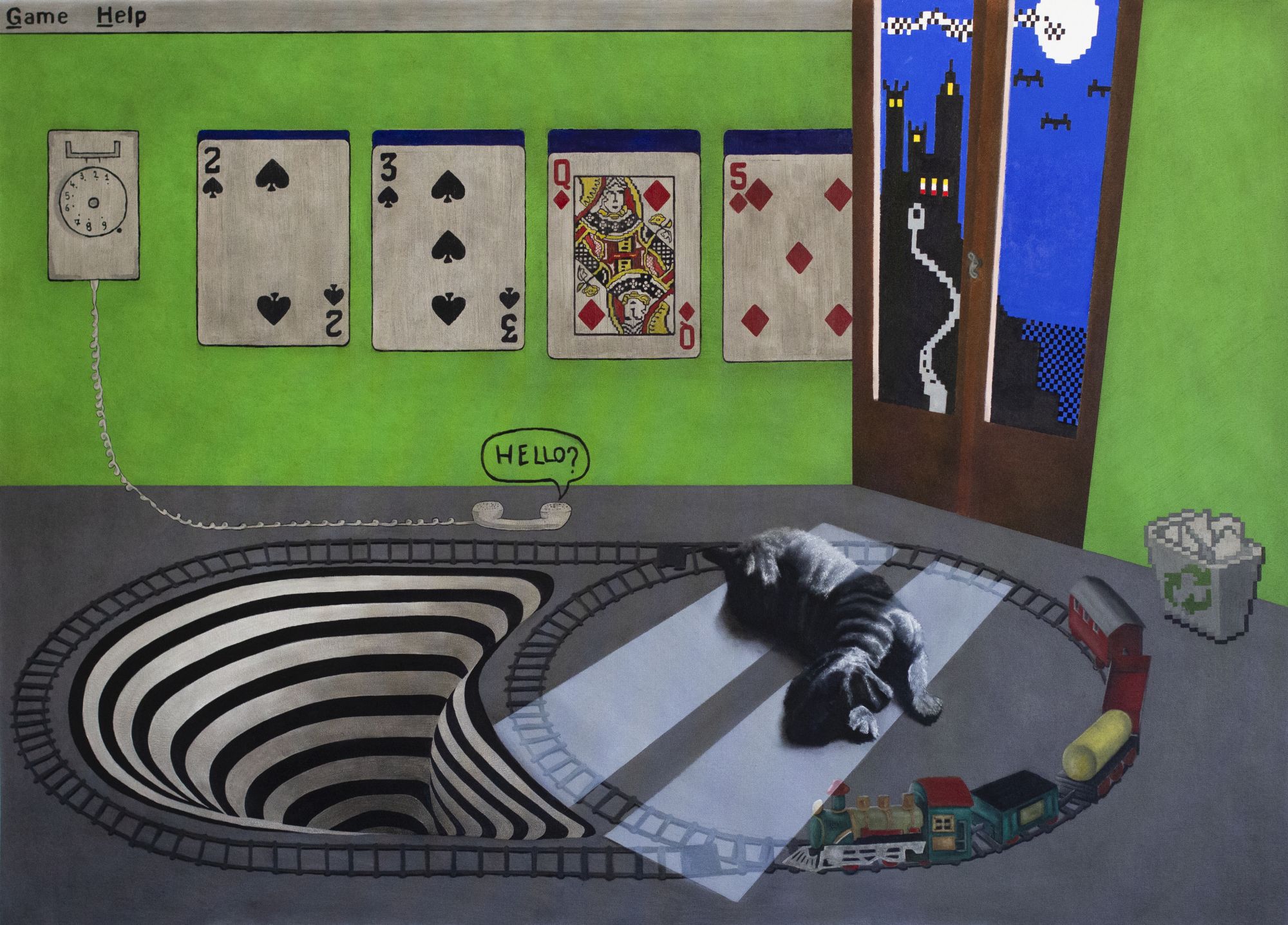 Ogni opera è un rebus da risolvere in fase rem, muovendosi all’interno di un plesso computerizzato in cui scorrono e lampeggiano messaggi subliminali di un lifelong gaming, che nella dimensione ludica e infantile nasconde una trappola di ansie e automatismi (press enter to start - exit to die - easy/medium/ hard mood).
