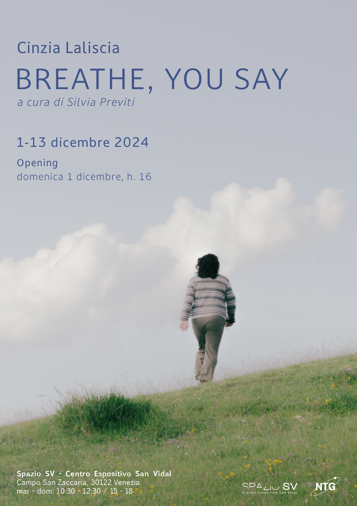 Lo Spazio SV – Centro espositivo San Vidal è lieto di presentare la prima mostra personale di Cinzia Laliscia dal titolo “BREATHE, YOU SAY”, a cura di Silvia Previti, dal 1 al 13 dicembre 2024 con inaugurazione domenica 1 dicembre alle ore 16.