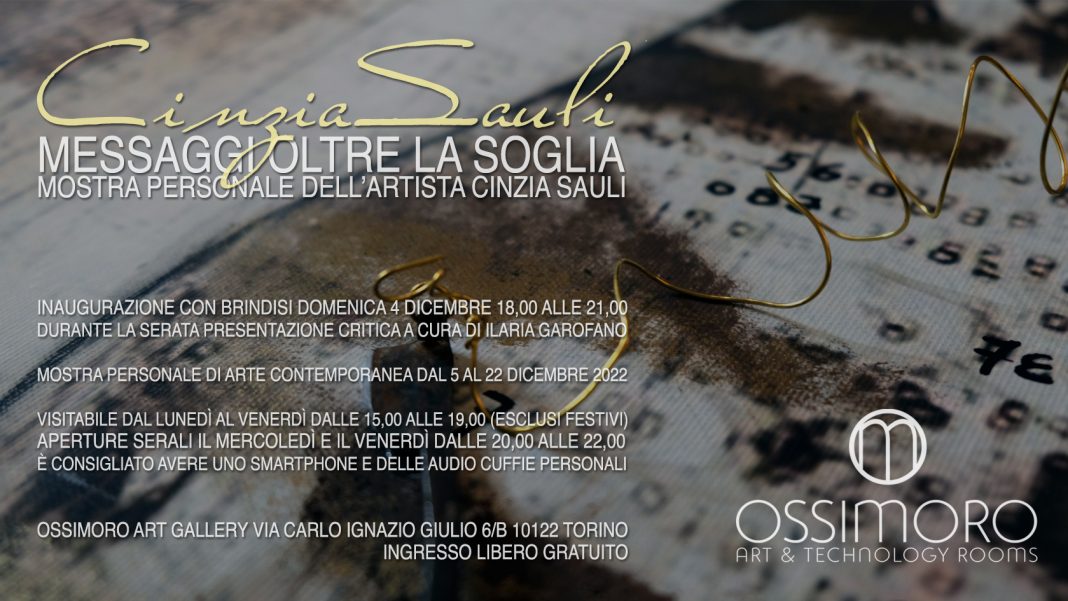 La Ossimoro Art Gallery è lieta di presentare “MESSAGGI OLTRE LA SOGLIA”, la mostra personale dell’artista Cinzia Sauli, nelle sale della galleria, nel pieno centro artistico e culturale di Torino.