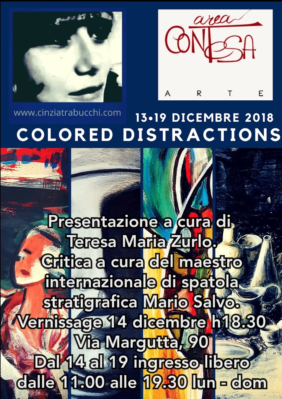 Area Contesa Arte è lieta di presentare la Mostra Personale "Colored Distractions" dell'artista Cinzia Trabucchi presente nella Sala Chagall dal 13 al 19 Dicembre 2018.