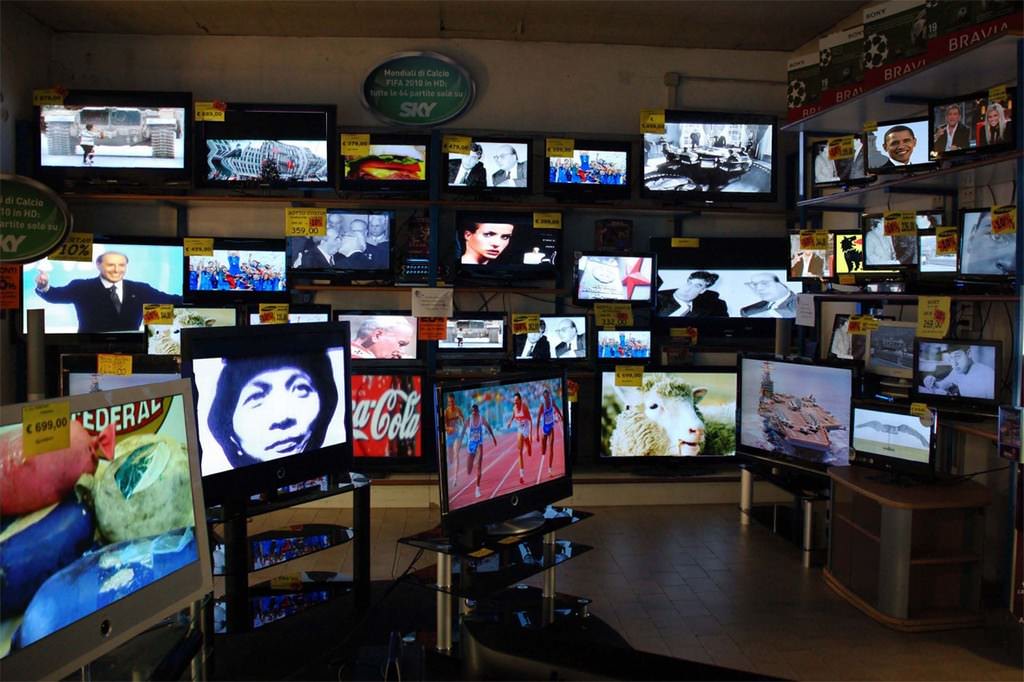 “100 presse x 100 televisori e rumore di pressa per 188 frigoriferi, 32 cucine, 155 lavatrici, 39 microonde, 58 ferri da stiro, 43 computer, 108 cellulari, 21 asciugacapelli, 42 videocamere, 124 aspirapolvere e altro”
