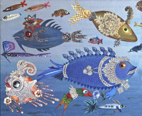 I pesci di Clara Rezzuti, sottolinea ancora Mario Franco, si inseriscono a pieno titolo nella tradizione dei bestiari fantastici, che utilizzano le caratteristiche e le proprietà naturali e soprannaturali di animali irreali, secondo le tradizioni che partono dalle cattedrali del Medioevo, “se non addirittura da quella che si crede il primo “bestiario fantastico”: il Physiologus, scritto probabilmente nella seconda metà del II secolo d.C. ad Alessandria. Ma esempi di animali metamorfizzati si ritrovano anche nelle moderne letterature, da Guillaume Apollinaire a, ovviamente, Jorge Luis Borges. Il suo “Manuale di zoologia fantastica” è un libro fra i più interessanti del geniale scrittore argentino: fra le maglie del suo dottissimo gioco letterario s’intravedono profondi abissi teologici. E teologica del resto è anche l’ispirazione di Clara Rezzuti (senza dimenticare che il pesce è stato a lungo un simbolo del cristianesimo), il panteismo che le permette di ibridare fauna e flora, così come la tecnica pittorica le consente l’ibridazione di colori e collages, trasparenze vitree e opacità quasi minerarie. Così, pesci fantastici e mitologici come le sirene, nuotano con una varietà tutta napoletana, che ricorda il catalogo del “Guarracino” che si azzuffa per la bella “sardella”, scompigliando il placido Tirreno. Se Borges, a proposito del drago affermava: «Ignoriamo il senso del drago, come ignoriamo il senso dell'universo; ma c'è qualcosa, nella sua immagine, che s'accorda con l'immaginazione degli uomini», possiamo dire che le profondità marine, con il loro brulicare di vita misteriosa, ci fanno riflettere sulla folla dei pensieri e delle fantasie che popolano la mente di un’artista”.