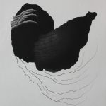 Nelle opere di Claude-Alain Giroud la luce sembra diffondersi a partire dal nero delle superfici incise attraverso la semplice modulazione del contrasto con il bianco della carta. Le forme nere, apparentemente prive di un preciso riferimento figurativo, appaiono da un lato dinamiche e intense, e dall’altro delicate come fogli di carta velina al vento. Giroud stesso afferma che alla base della sua poetica si pone la fascinazione per il nero nelle sue sfumature e per gli effetti di luce che per contrasto vengono a crearsi; ma soprattutto c’è il ricordo del colore e delle forme morbide delle colate di lava vulcanica osservate sulle isole di Capo Verde. La reale esperienza di vita in Africa e un tocco di japonisme si ritrovano oggi artisticamente sublimati nelle opere che si possono ammirare nel Porticato della biblioteca luganese.
