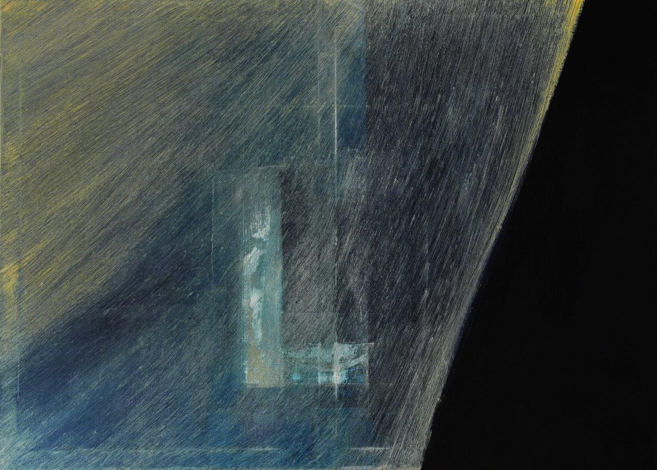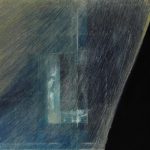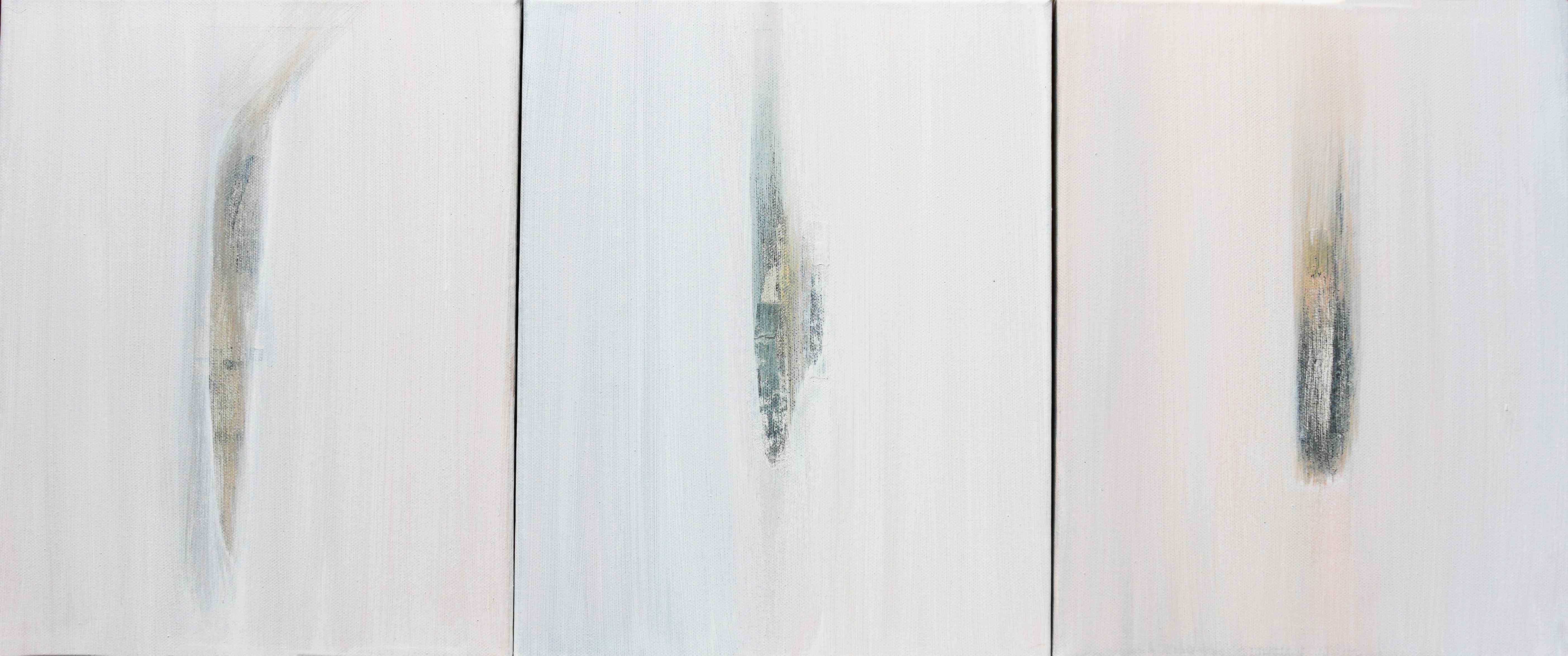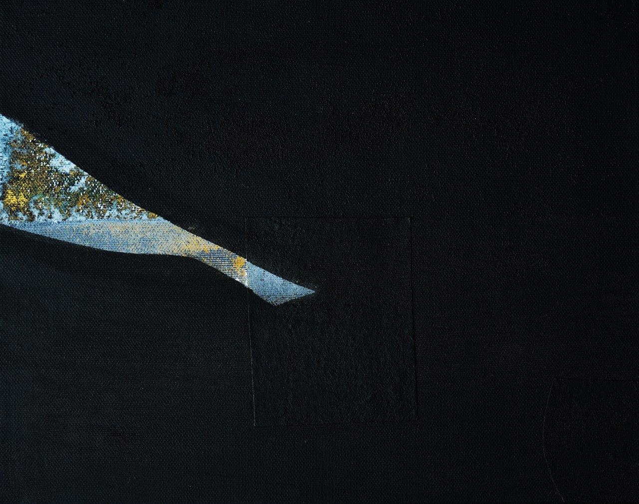 Nelle sue opere stratificate e dense di significato, le pennellate fluide e dinamiche dialogano con la delicatezza della tarlatana e le predominanti tonalità scure – che vanno dal nero profondo ai grigi sfumati – lasciano progressivamente spazio al quieto chiarore dei bianchi, creando un’atmosfera meditativa e assorta, interrotta da improvvisi squarci di colore, come elementi di rottura inattesi che aprono nuovi orizzonti di pura luce ed energia.