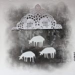 Il luogo che ospita questa mostra è quello che ha ispirato la realizzazione di questi piccoli lavori. Insieme alle immagini già presenti sulle pareti, Ascensione, Natività, un’Annunciazione e un affresco absidale, lo spazio ospita un piccolo gregge di carta e feltro: sono immagini delicate, ricamate con un motivo di pizzo bianco, quasi a voler emulare i santini più preziosi, quelli su carta merlettata. Ma non è tanto l’aspetto religioso che si punta a focalizzare (gli agnelli hanno da sempre rappresentato, per la cristianità, gli apostoli ed il sacrificio di Cristo), quanto la magia e la superiorità di Madre Natura.