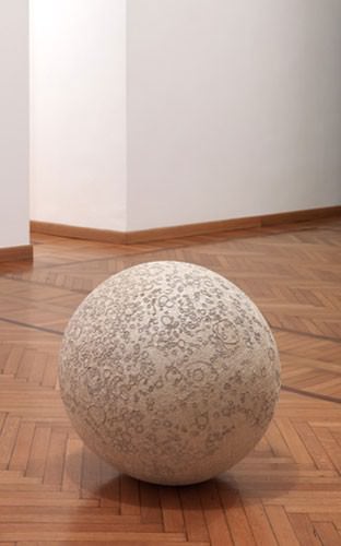 La trama formale dei nuovi lavori è l’astronomia, insieme all’osservazione del paesaggio che ci circonda e ci contiene. Il nucleo è dato dalla grande sfera di filo ricamata che rappresenta la luna. Questa diventerà l’origine di un nuovo work in progress che partirà durante l’inaugurazione proprio a contatto con il pubblico.