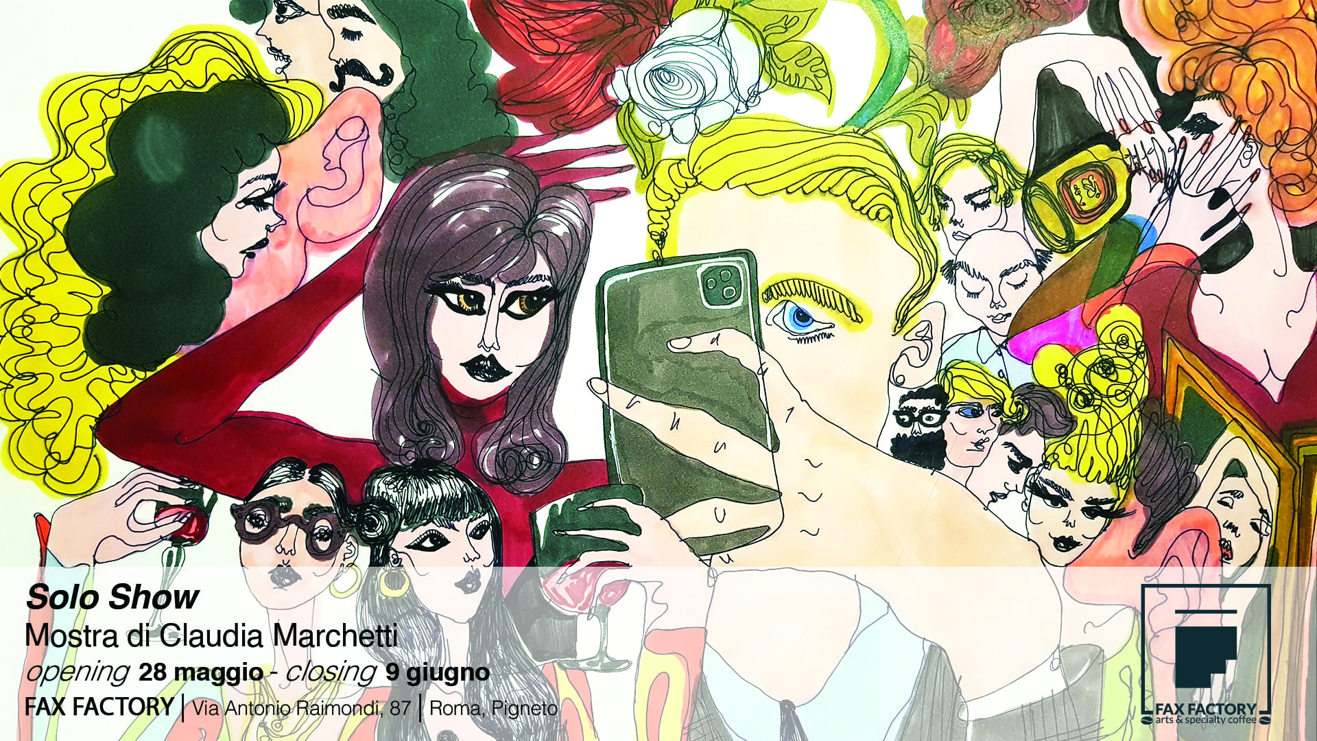 Durante l'inaugurazione della mostra, il 28/05/2022, Claudia eseguirà un'opera dal vivo, catturando l'evento attraverso una serie di ritratti in situ dei partecipanti che verranno inseriti in un paesaggio umano ricco di sfumature, una finestra sui sentimenti e l'umore del suo pubblico.