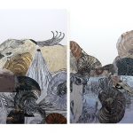 Una esposizione dall’esperienza immersiva, opere e allestimento avvolgente, forme fluttuanti all’interno di un segno sempre nitido e una gamma cromatica senza contrasti. È la ricerca di equilibrio ciò che si avverte osservando i collage di Claudia Marini. Il processo creativo si avvia dalla scelta della carta, in particolare quella giapponese, ma anche carte di recupero, giornali, vecchi libri, carte assorbenti, poi stampate manualmente con tecnica linoleografica, recuperando attraverso il segno forme vegetali, animali, astratte. Le carte sono spesso soggette a ulteriori interventi pittorici e vengono ritagliate seguendo un flusso che si ricompone su cartoncini o tavole dipinte, in una costruzione lenta e meditativa, quasi senza fine.