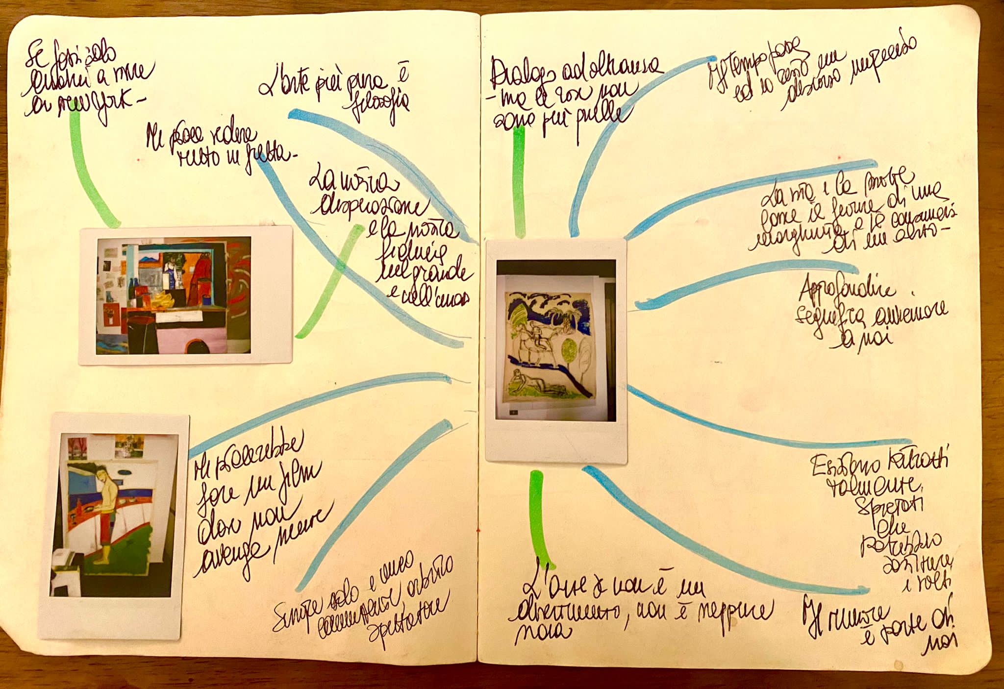 Sulle pareti dello studio, la trascrizione di alcuni dei pensieri di Alik raccontano la sua visione libera, legata alla quotidianità e al costante richiamo della natura. Pensieri in cui Claudia Piscitelli si riconosce e si identifica.