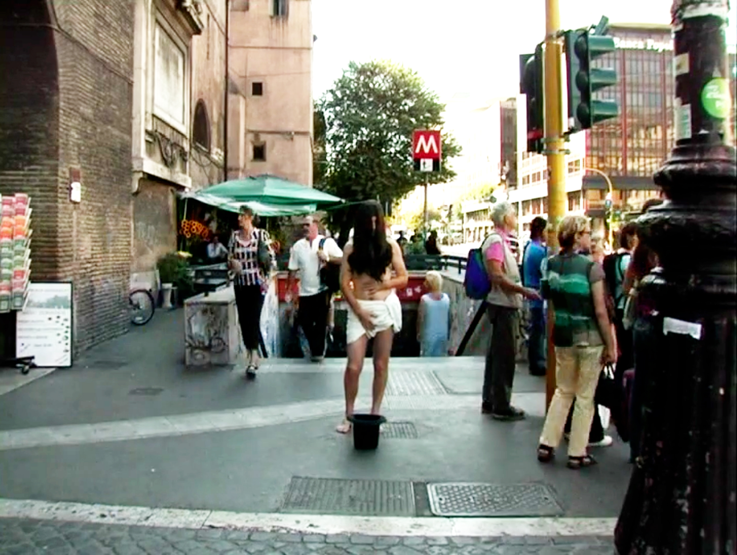 Con la telecamera fissa sulla performance inframezzata dalle riprese delle reazioni dei passanti, Venere Metropolitana ha portato una delle maggiori problematiche dell’arte direttamente in strada. La reazione dell’ignaro pubblico, parte integrante dell’opera, non è prevedibile dall’autrice e diventa un aspetto concreto della pratica artistica. In tal modo vengono indagati i meccanismi che regolano i comportamenti collettivi e gli ingranaggi della comunicazione.