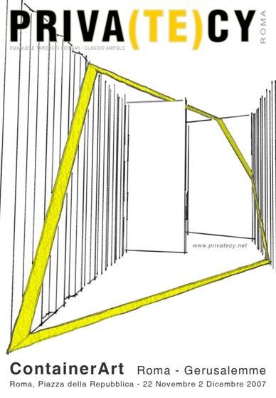 Se il nesso potere-sapere è fondamentale per Foucault, l’occhio onnipresente dellevideocamere, rovesciato e restituito dall’arte a chi ne è quotidianamente oggetto, conserva il dono di una visione simultanea, di una percezione spazio-temporale stratificata in più dimensioni, usualmente non consentita dalla limitazione fisica dello sguardo. Rendevisibile l’invisibile. Il riflesso di sé, così, si sdoppia fino a moltiplicarsi, acquisendoun’incredibile potenzialità cognitiva se immesso nella rete quale informazione condivisa eintercettabile dall’ambiente a-dimensionale del web.E’ un nuovo spazio dell’identità. L’immagine del proprio volto si dissolve nei frammenti discontinui e quantificati di un preciso quadro numerico che si trasforma in forma visiva,ricomponendosi in qualsiasi momento, altrove, ovunque. In questa metamorfosi dinamical’immagine virtuale recupera, dunque, la propria iconicità pura perdendo l’identità di pittura, di fotografia, di immagine televisiva o cinematografica: «Questa architettura di luce non è molto più che il ricordo di una trama, un sistema sequenziale, modulare e matriciale» (Paul Virilio). Priva(te)cy invita a un atto di “autosorveglianza” e di consapevolezza collettiva: priviamoci della privacy ed offriamo volontariamente il nostro viso al viaggio condiviso dentro una conoscenza globale. Oltrepassare la saetta gialla fa la differenza fra rimanere in fila allaposta dietro una linea, sotto lo sguardo passivo di una telecamera a circuito chiuso, e compiere un salto spaziale e temporale nella diffusione istantanea della nostra memoria individuale che si andrà a innestare nei circuiti di pensiero di una memoria interconnessa. Nella camera oscura del contaneir si rovescia il significato dell’immagine catturata ed iniziala gestazione emotiva di un ri-conoscimento nella vertigine dell’esplorazione: il Narcisovirtuale donerà il suo il riflesso ubiquo in un attimo inaspettato e lo ri-conoscerà all’interno dell’opera collettiva interattiva, costruita in una pubblicazione web dinamica. Ciascuno potrà decidere individualmente se decriptare la rappresentazione celata del proprio viso e renderla attivamente partecipe di una coscienza di rete. Da Roma a Gerusalemme al mondo intero lo spazio si comprime, il tempo accelera,nell’atto liberatorio dei visi interconnessi.