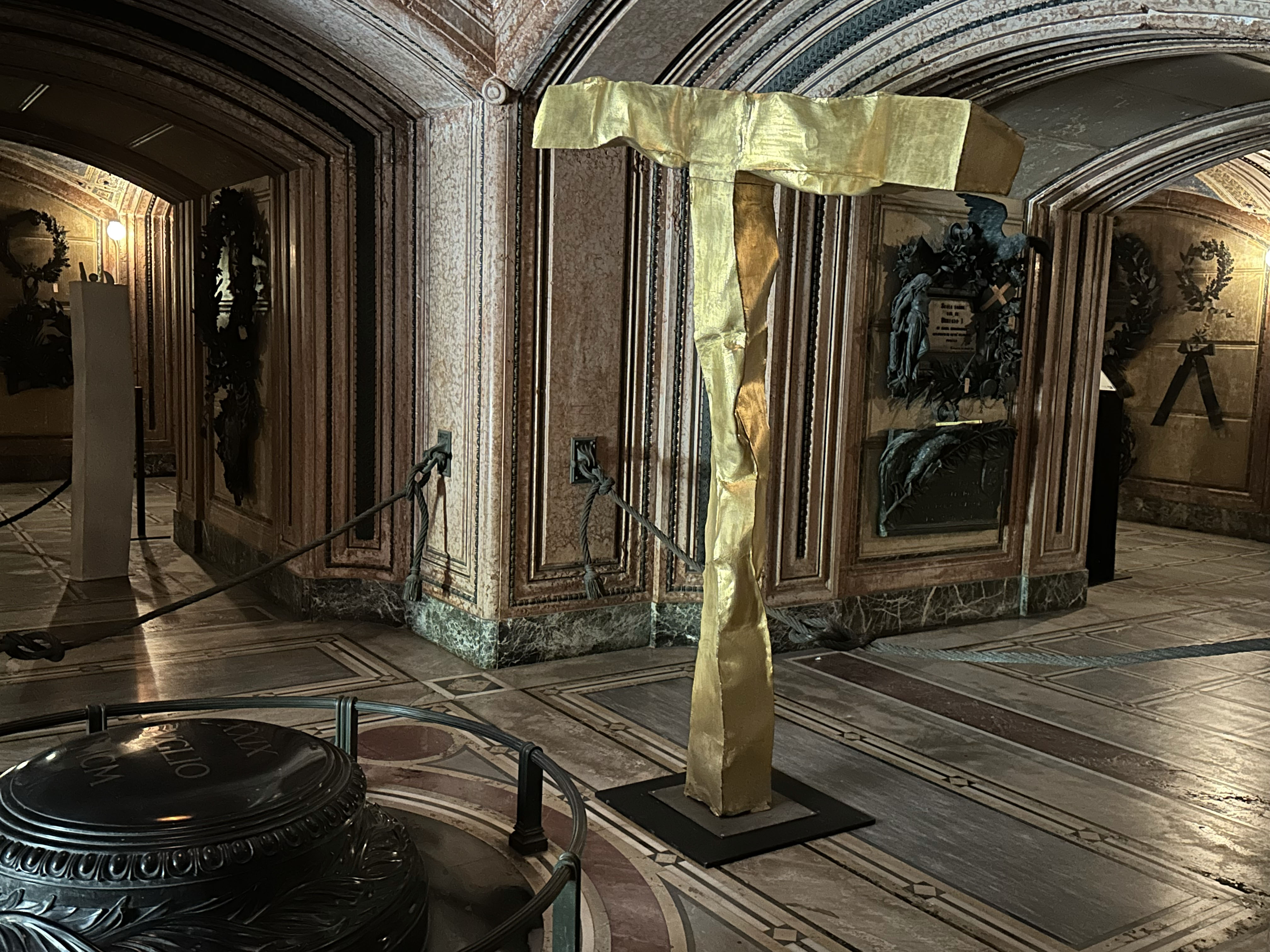 Giuseppina Di Gangi, promotrice del progetto insieme a Daniela Porta di LeoGalleries, coordina e accompagna opere e parole nel percorso che coinvolge la Cappella Espiatoria come luogo dell’arte contemporanea.