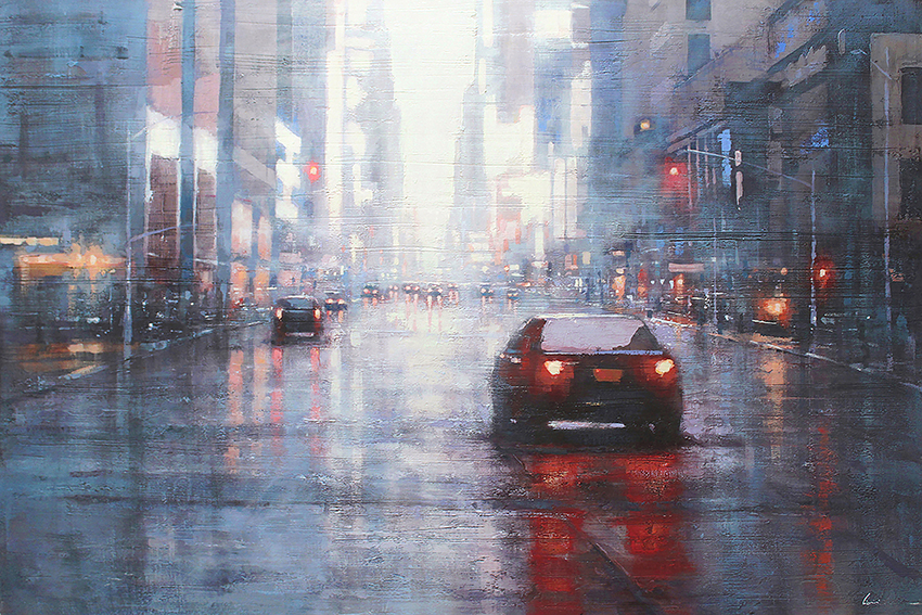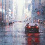 Gli strati di acrilico, giustapposti meticolosamente utilizzando le spatole sulla tela e andandola quasi a graffiare, portano il nostro sguardo a studiare le sfumature di luce che pervadono le strade urbane e non, riscoprendole sempre mutevoli ogni qualvolta ci soffermiamo su di esse. Le opere di Claudio Cionini sono visioni e vedute che puntano all’essenza, cogliendo luoghi in cui la presenza dell’uomo è solamente percepita attraverso i fari di un’auto, la luce intravista da una finestra, un sentiero battuto in quella campagna dall’aria rarefatta, in un religioso silenzio, capace di svelare la sensibilità delle cose o dei luoghi mentali raffigurati.