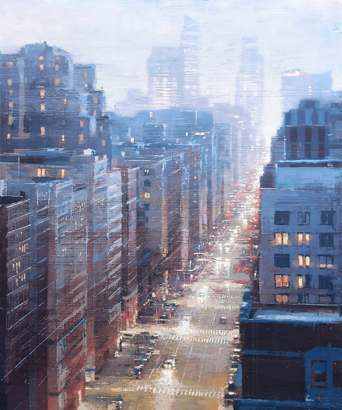 A volere che l’artista maremmano tornasse a esporre nella sua galleria, è stato Niccolò Mannini che fin dagli inizi ha creduto nella qualità e peculiarità dei suoi lavori contribuendo al successo di questo pittore conosciuto ormai ben oltre i confini nazionali. Dagli esordi, quando dipingeva gli altiforni della natia Piombino e da Rust! Fabbrica, Città, Memoria, la personale del 2011 al Museo Piaggio di Pontedera, ne è passato di tempo, e Metropolis rappresenta un nuovo capitolo del viaggio introspettivo di Cionini nel mondo dinamico, moderno delle grandi città.