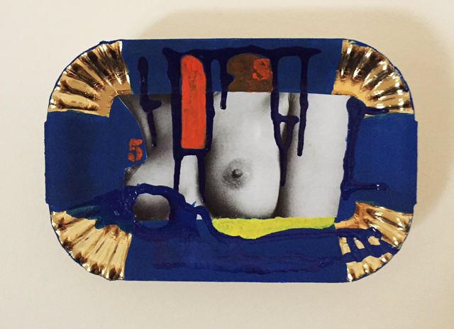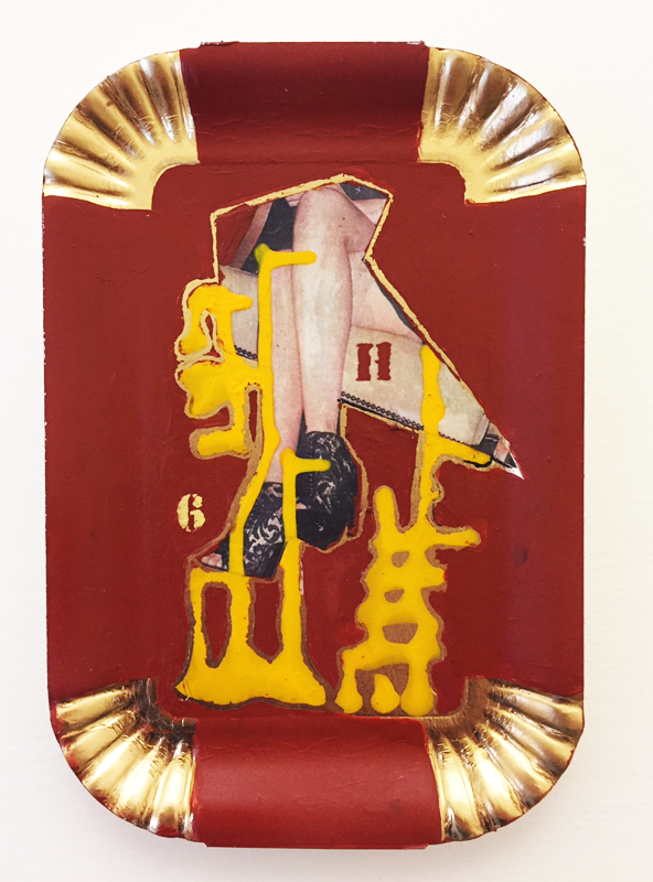 La mostra/installazione “I pasticcini li porto io”, (Mixed Media), è costruita come una quadreria ottocentesca: da pittore qual è, Di Carlo coglie un’infinitesima porzione di tempo e spazio nella storia, ma la fissa su un supporto industriale come i vassoi da dolci, in uno spiazzante incontro tra tradizione pittorica occidentale e contemporaneità, tra alto e basso, passato e attualità, arte e produzione di massa. Il vassoio stesso ha una sua cornice che ci riporta al quadro, ma dentro di esso Di Carlo fa esplodere le sue immagini del mondo, del suo e del nostro, un mondo che non accetta di essere “incorniciato”, “inquadrato” o “codificato”.