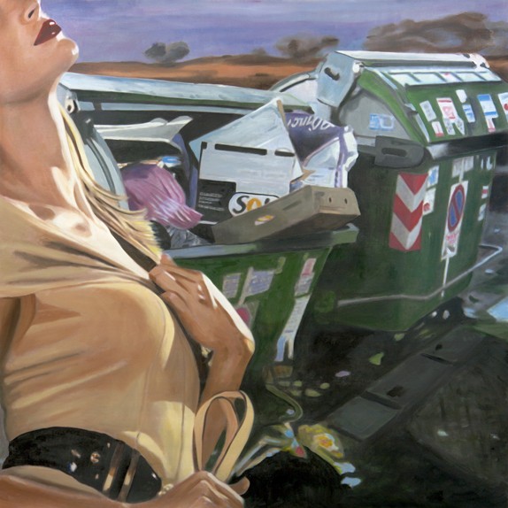 Con TrashChic, come si evince dal titolo stesso, l’artista crea nuove ambientazioni: luoghi trash che fanno da scenario a figure femminili, accessoriate alla moda o completamente nude. Le figure appaiono perturbanti nella peculiarità di un linguaggio sociale atto a provocare un cortocircuito visivo che sta proprio nell’accostamento tra la rappresentazione di merce “socialmente inutile” ed i corpi di splendide donne. I rifiuti, gli oggetti da discarica vengono quindi sublimati di nuova aura.