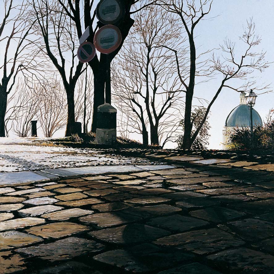 L’artista bresciano è interprete di una raffinata ricerca estetica basata su una tecnica virtuosistica che si sviluppa in direzione di un’interpretazione iperrealista del paesaggio
