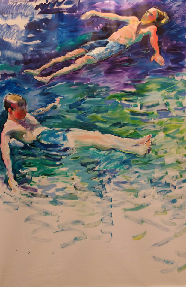 Pensieri evoluti, dunque. Concetti che sono associati, in psicologia, a quei simboli onirici attraverso i quali riceviamo delle intuizioni su quella parte di noi - quella inconscia - che ancora oggi non conosciamo in maniera precisa e perfetta. E che possiamo solo provare, dunque, a comprendere; senza avere alcuna certezza o sicurezza sulla sua natura. I dipinti di Claudio Malacarne sono l’esaltazione estetica e stilistica di tutto questo. Tanto nel colore, quanto nella forma e quanto, pure, nella figura essi sublimano i “mondi maieutici” del dentro e fuori: quegli universi paralleli, coerenti tra loro, che sono capaci di influenzarsi tra loro in un “modulo olistico” che fa da sommatoria tra le parti. Magia, tutto questo, di quella “sapienza maieutica” che in Socrate, quanto in Platone, trovò piena esaltazione nell’idea che la verità è un sapere dell’anima; che non si può insegnare, ma solo trasmettere. Cosicché ognuno deve "partorire la sua verità". Quella che c’invita a percepire Claudio Malacarne - attraverso i suoi dipinti - è una verità che associa l’immagine dell’acqua con uno stato emotivo di gioia e serenità, di pace e armonia. Si tratta di “costruzioni semantiche” (figure di bambini che nuotano e di giovani che si tuffano) capaci di esaltare le nostre emozioni, quando siamo in uno stato di veglia. E poi va anche oltre. Intorno alla percezione dell’acqua egli arriva, persino, a portare fuori controllo le nostre emozioni. E le rinvia ai nostri sogni e ai nostri vagheggi della mente: a quel mondo delle lucide fantasticherie e dell’immaginativamente presente che rappresenta uno degli assi portanti dell’arte contemporanea.