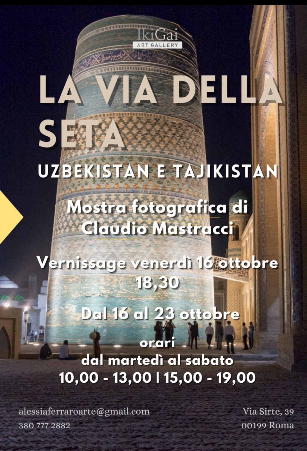 Dall’antica Cina si srotola una lunga via, che attraversa praterie, deserti, laghi e ripide montagne, per trovare riposo nelle placide acque del mar Mediterraneo. Esiste da tempi remoti, ma fu chiamata solo nell’Ottocento con il nome di via della seta, rotta commerciale che favorí lo sviluppo di molte civiltà. Tra i numerosi paesi che attraversa ce ne sono due, forse sconosciuti ai molti, ma noti all’occhio attento di Claudio Mastracci, l’Uzbekistan e il Tagikistan. Due microcosmi, nella sconfinata Asia, che l’artista ci descrive come cellule di bellezza, ricche di cultura e di storia.