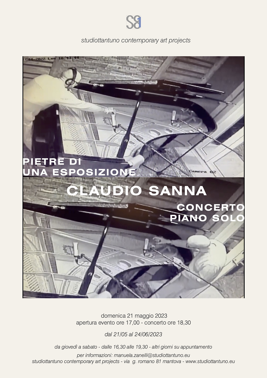 Per Estate Musica 2023 "Suoni dalla natura", Studiottantuno Contemporary Art Projects presenta il concerto del pianista e compositore Claudio Sanna dal titolo "Pietre di una Esposizione", realizzato intorno alle sculture sonore di Pinuccio Sciola scultore sardo, noto in tutto il mondo per aver "scoperto" contenuti sonori, come primaria essenza astratta della pietra, da lui suonata con le mani o con plettri di pietra o con archetto di violoncello. Queste sculture "abitano " il Giardino Sonoro, museo a cielo aperto dell'artista, a San Sperate, suo paese di origine. Claudio Sanna ha iniziato dal 2022 un progetto di ricerca che indaga i suoni e i silenzi possibili/impossibili delle opere di Pinuccio Sciola in costante dialogo con la musica del presente. Interrogandosi su come tradurre gesti e qualità dei suoni originari delle opere di Sciola in un altro suono, Sanna ha commissionato ad alcuni dei più rappresentativi compositori viventi italiani e stranieri la scrittura di un loro individuale brano. Le loro composizioni sono ispirate al pensiero, alle forme e alle suggestioni delle opere di Sciola o direttamente ai suoni delle sue pietre da lui suonate e quindi ai suoi gesti. I compositori sono: Paolo Ugoletti, Carlo Pedini, Luigi Esposito, Philippe Festou, Giovanna Dongu e lo stesso Claudio Sanna con la suite, "Pietre di una Esposizione", da cui il titolo dell’intero progetto, ove il richiamo all’origine è stato lo spunto per la scrittura di quattro composizioni che rappresentano i quattro elementi naturali, alla base della cosmogonia: Terra, Acqua, Aria, Fuoco.