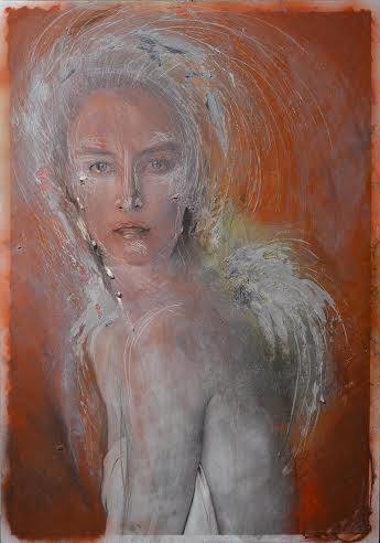 L’opera di Claudio Signanini, nei quadri presenti in mostra, si estrinseca nel contrasto tra il volto mistico e l’aspetto terreno delle sue creature, tema sempre caro al pittore. Attraverso interventi graffiati, pennellate materiche ed ossidazioni, prendono vita “gli angeli dal viso sporco”, che sembrano aver vagato nei meandri metropolitani per riapparire, contaminati e ricreati dalla realtà circostante, dalla ruvidezza dei materiali e dall’esaltazione del colore. Due, le azioni dell’artista. Il lavoro di svelatura, con l’abbandono dei nascondigli di PVC trasparente e delle trappole di rete metallica, a destrutturare il mito, mostra, svela e rivela figure libere dal convenzionale ed etereo concetto angelico; al tempo stesso, la tecnica del simultaneo utilizzo di olii, ossidi ed acrilici su carta e legno, compone una nuova ed affascinante schiera celeste. E’ dunque l’intervento stesso del pittore che, mettendo mano alla medesima matrice, sostituisce volti terreni e connotati definiti ad un’idea diafana ed impalpabile, sporcandone il candore in una mescolanza di fascino e vitalità. Angeli contemporanei, sempre più lontani dal mistico rimando al divino, si materializzano nel più carnale allontanamento da esso.