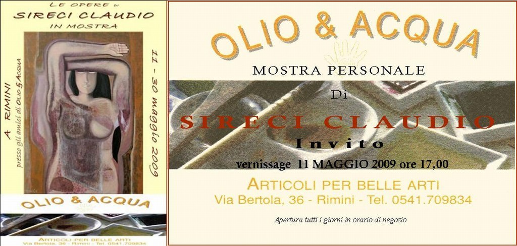 Si inaugura la mostra personale itinerante di SIRECI CLAUDIO, che dopo Trento con "Female" e Genova con "Percezioni di femminilità", approda a Rimini dagli amici di Olio & Acqua.