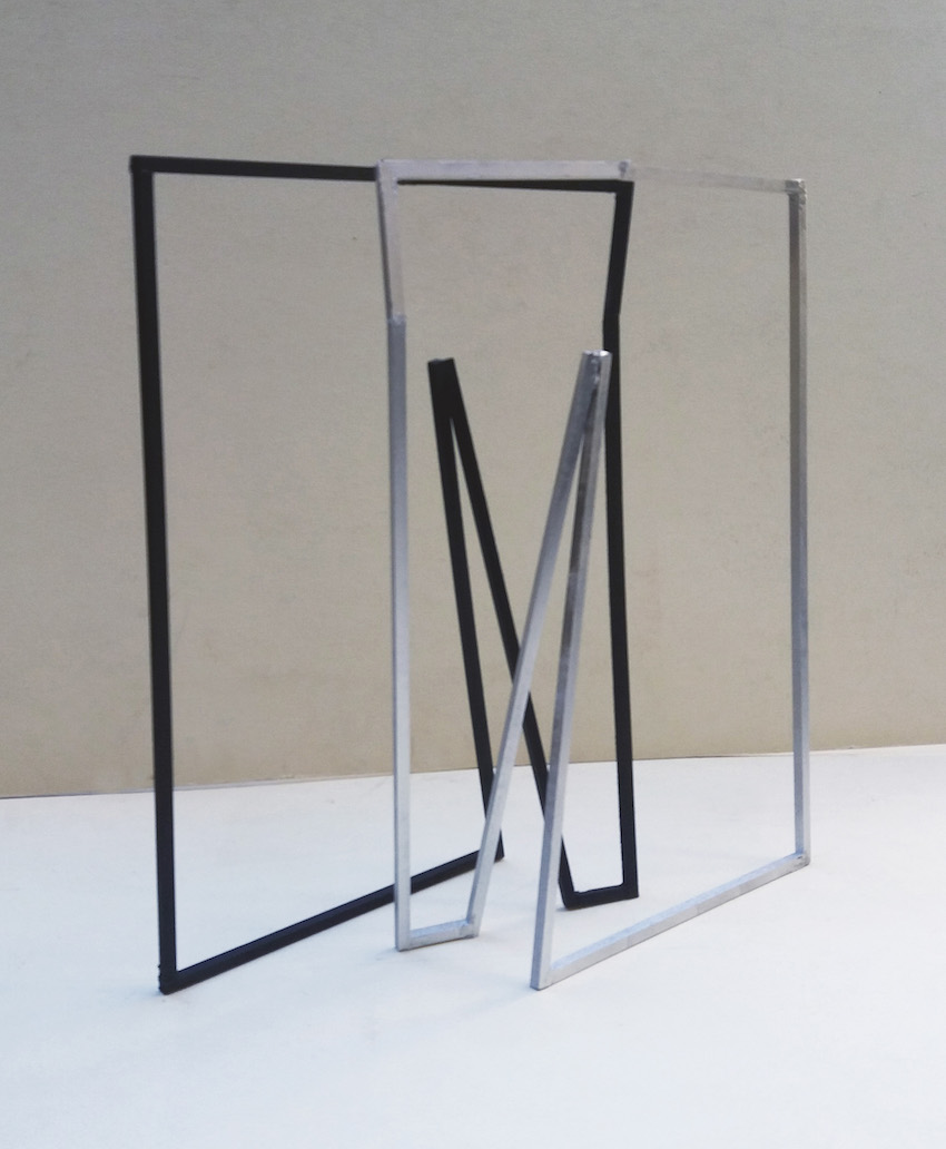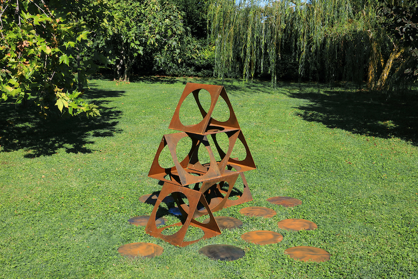 Nelle opere metalliche di Giovanna Martinelli si percepisce la matrice grafica, il segno netto e sottile, come di scrittura trasferita nelle tre dimensioni. Dove acquista la forza di una struttura architettonica. Espone L’alleanza e Phi.