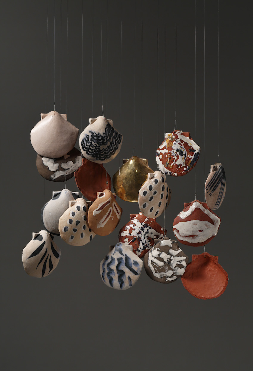 Riccardo Monachesi ha individuato i temi del viaggio e dell’elemosina, le conchiglie di San Giacomo che rendono riconoscibile il pellegrino. Alle conchiglie si aggiunge una sequenza di ciotole, che scandiscono gli anni passati da Alessio a mendicare. Un altro elemento, simbolico e reale, che caratterizza il pellegrino sono i passi, impressi nella creta come orme d’oro e d’argento. Di Ninì Santoro, uno dei protagonisti dell’astrattismo, è esposto il grande Ulisse in ferro e inox. La scultura celebra il capostipite dei personaggi la cui vicenda narrativa è incentrata sul viaggio. E Alessio è un Ulisse cristiano, assonante anche nel nome. I due Templari, di una serie di undici esposti per la prima volta nel 1974, alludono qui al vicino complesso del Priorato. Sono il Gran Maestro Jacques de Morleais, giustiziato per ordine di Filippo IV di Francia, e il sodale Montfleury. Mara van Wees ha privilegiato il tema della scala, scale irregolari e malferme, fatte di frammenti sovrapposti, e sovrapponibili all’infinito. Anche i prismi metallici, costruiti partendo da figure geometriche semplici, la circonferenza e il triangolo equilatero, richiamano il tema della scala, un omaggio nelle proporzioni al modulo della piramide Cestia. Infine, le Planimetrie di corti immaginarie, sculture che hanno come elemento generatore il piano, dialogano con il chiostro e con le iscrizioni marmoree sulle pareti. (dal testo critico, allegato, di Daniela Gallavotti Cavallero)