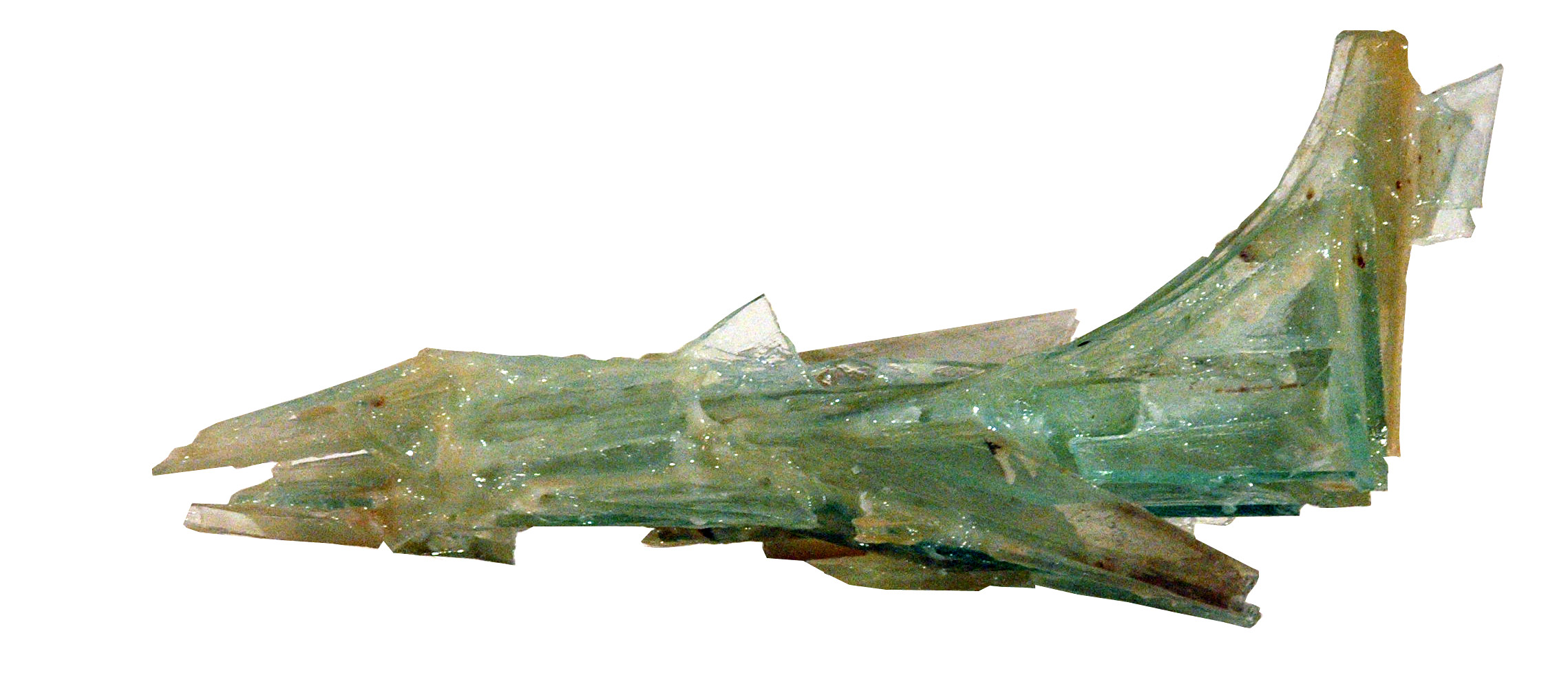 “Il vetro gioca nelle sculture,negli oggetti , installazioni e costruzioni di Clemens Weiss un ruolo elementare. Egli pone in relazione ai manufatti della nostra cultura le caratteristiche dei materiali di valore simbolico Nei suoi lavori utilizza il vetro con duplice aspetto : come conchiglia ,pelle o contenitore da un lato e come immateriale aspetto translucido di un particolare elemento.